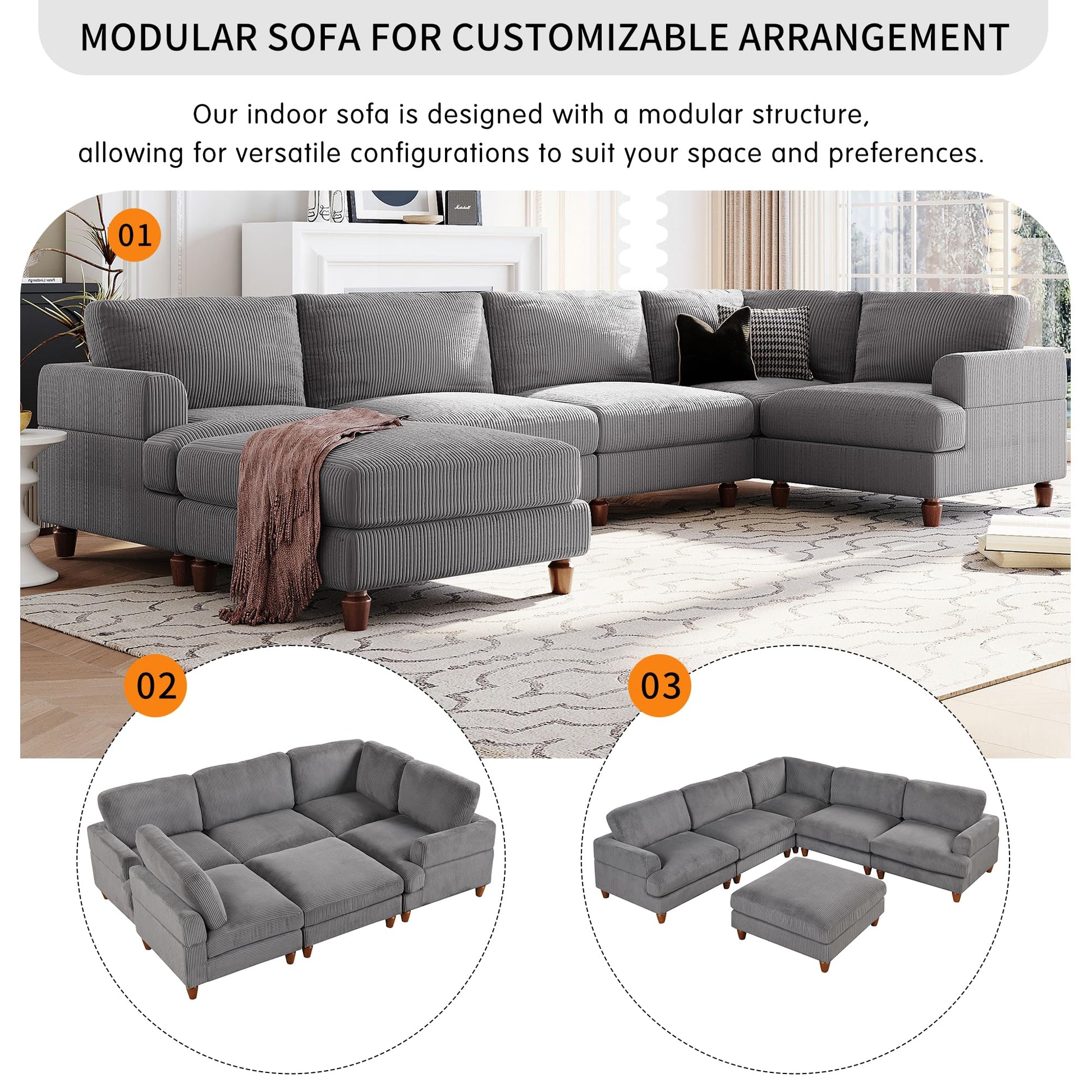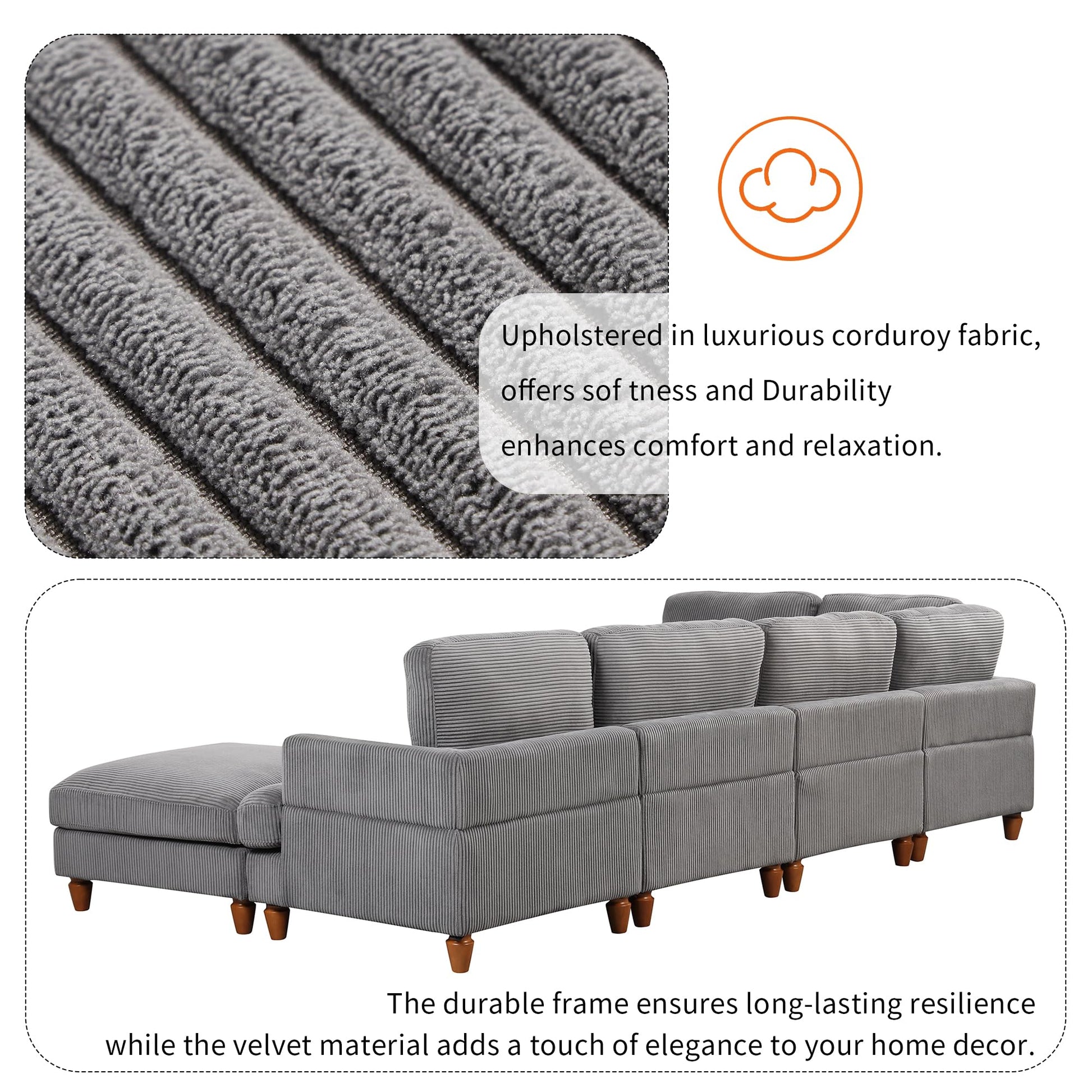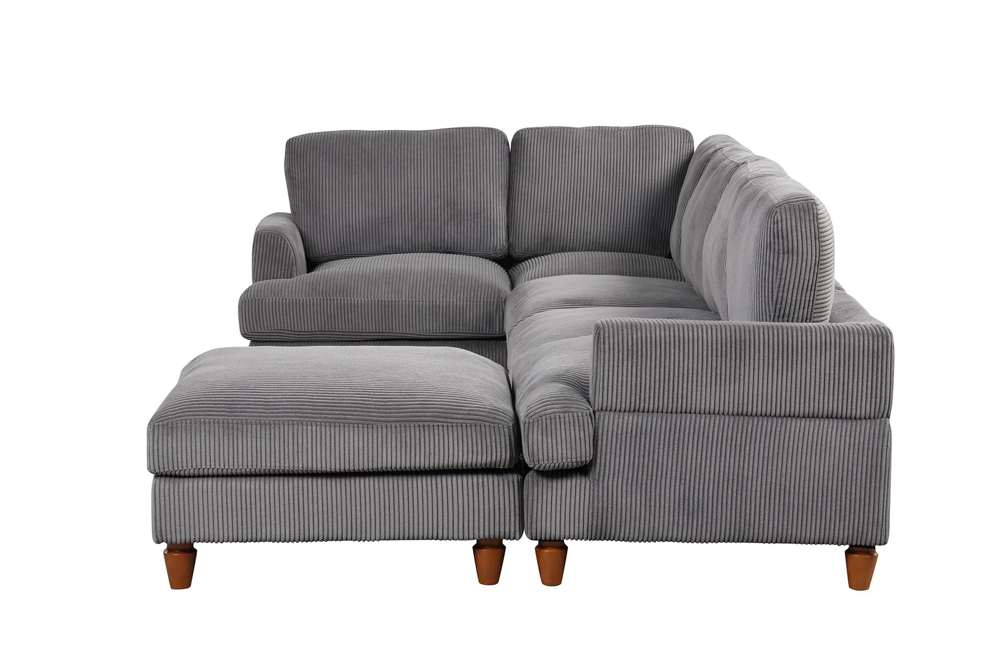 Corduroy Fabric Couch with Ottoman, L Shaped Sectional Sofa, 98" L Modular Corner
