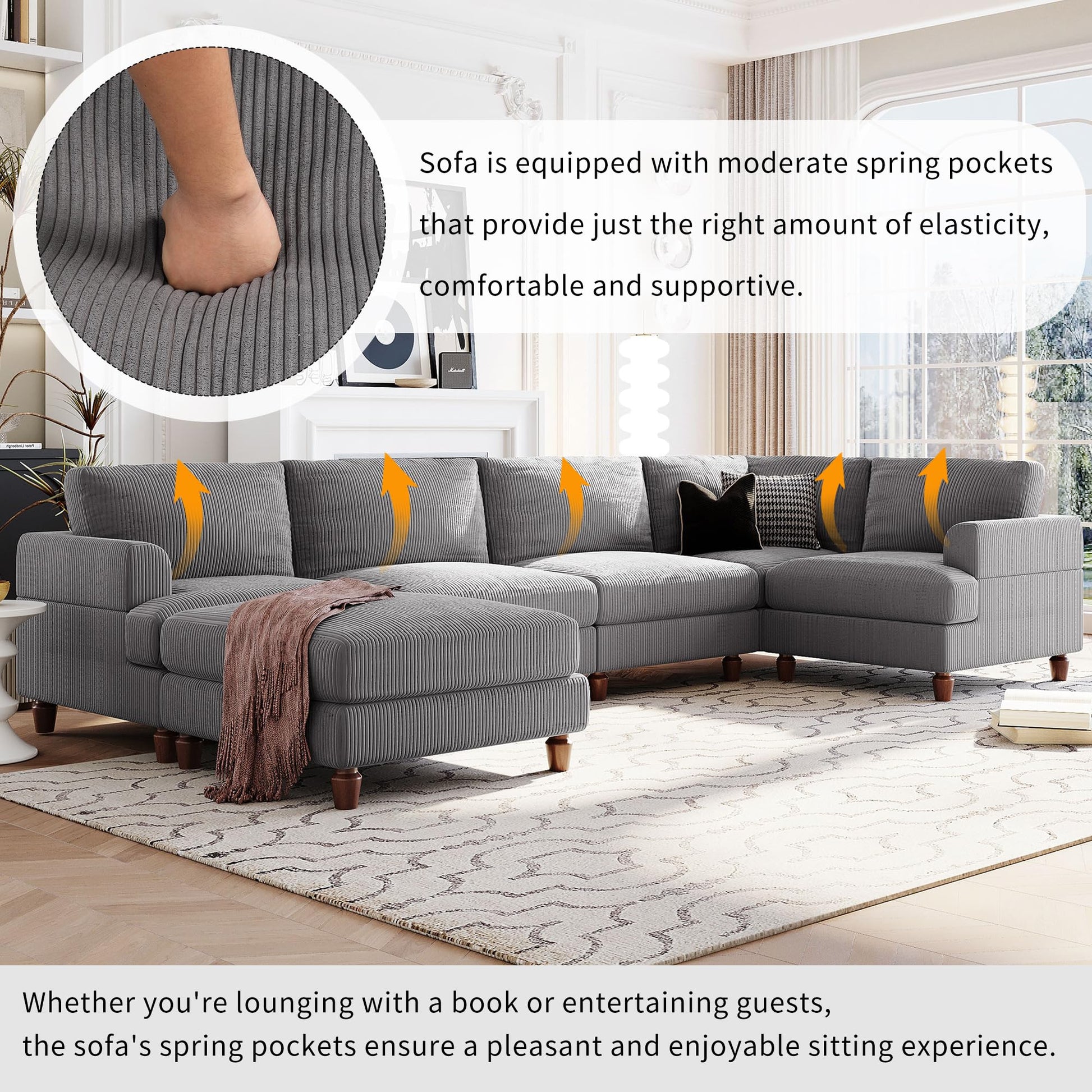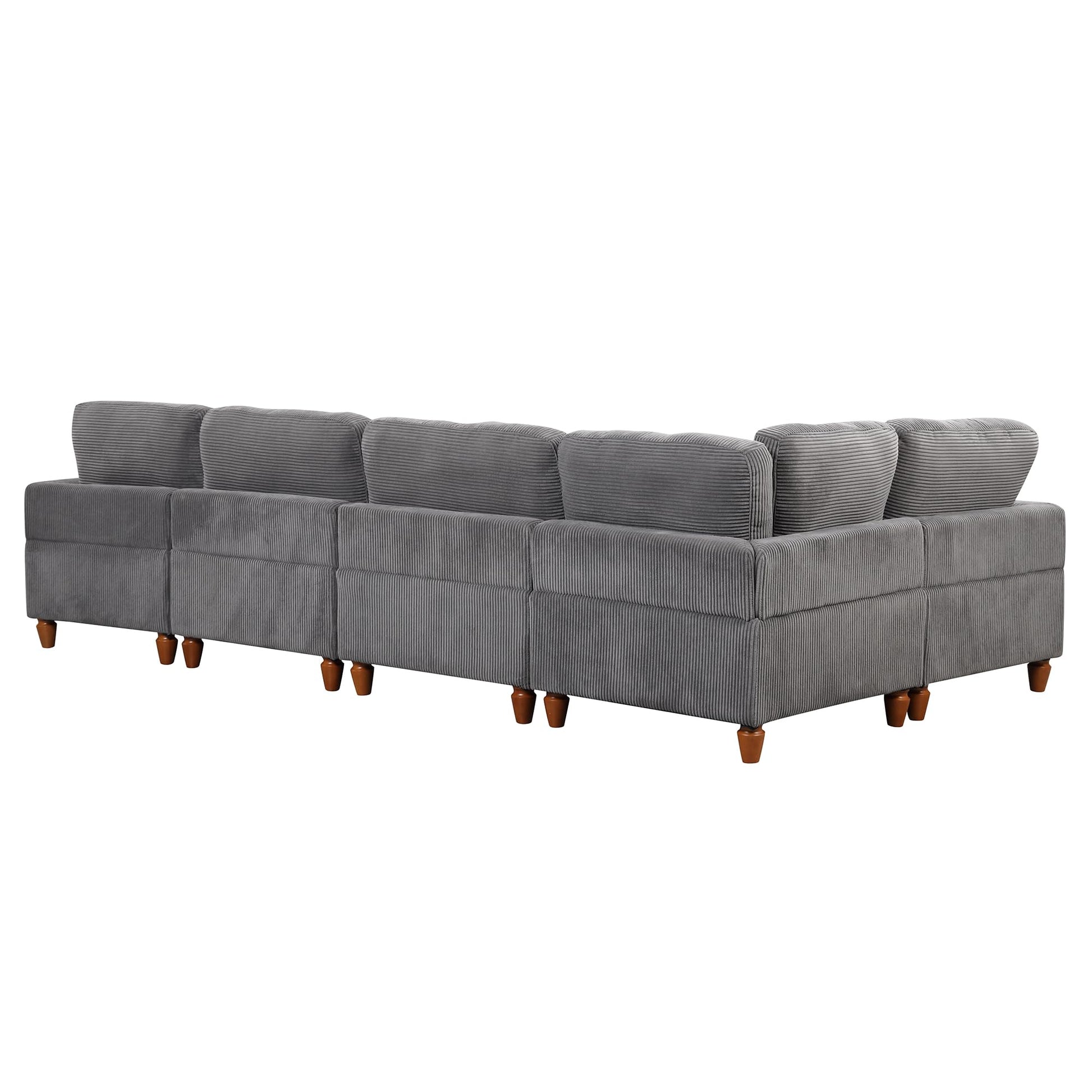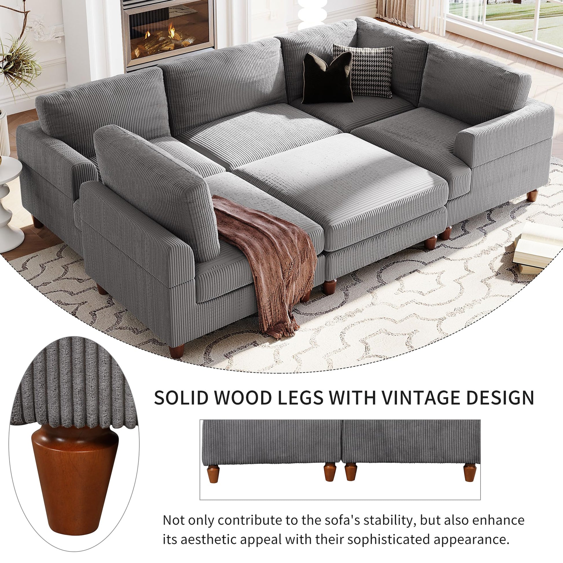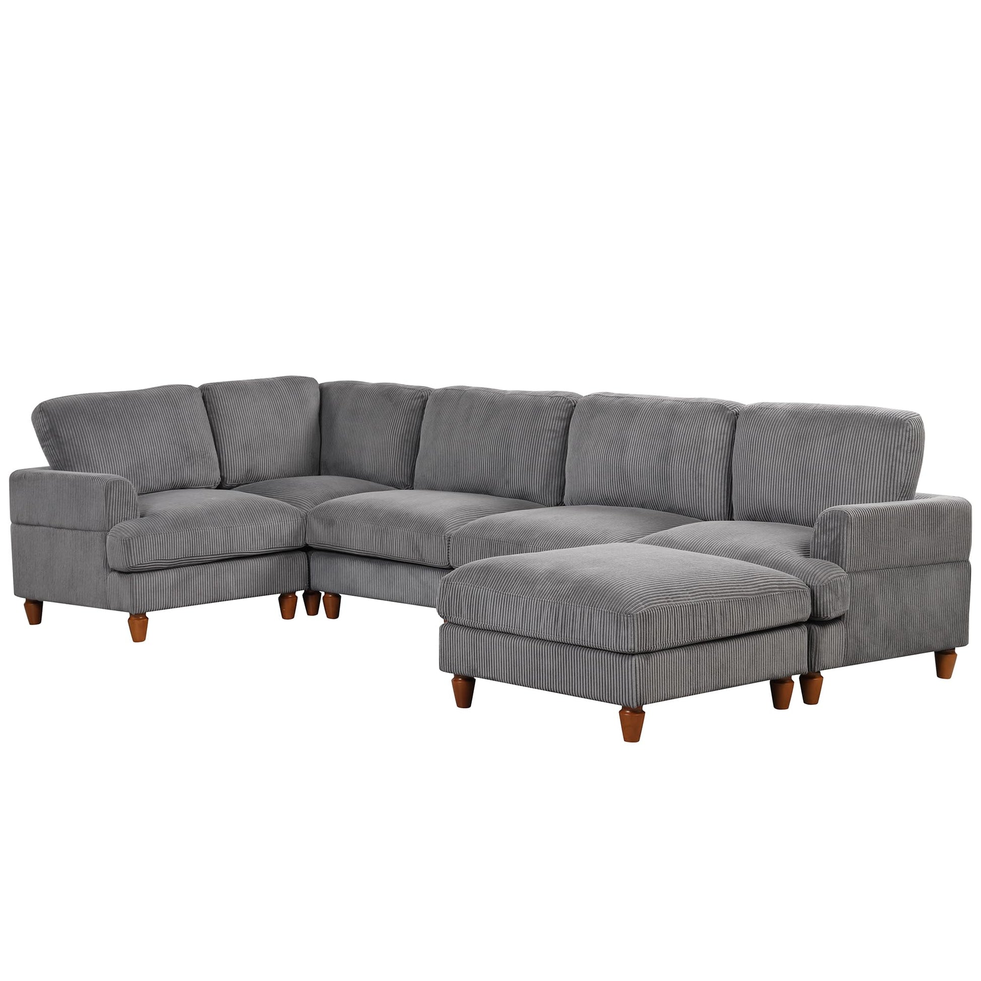 Corduroy Fabric Couch with Ottoman, L Shaped Sectional Sofa, 98" L Modular Corner