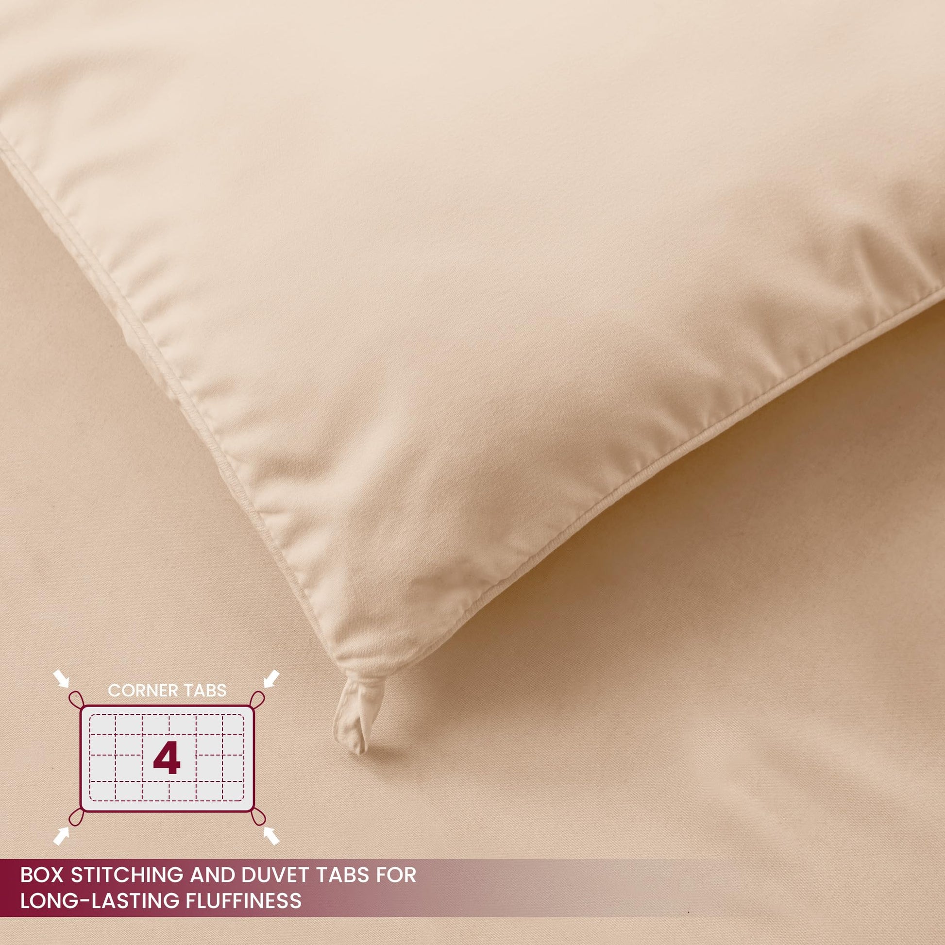 - The end-to-end box-shaped stitching prevents the filling from shifting, maintaining the comforter's fluffiness for years. Additionally, our duvet insert features tabs that allow it to fit securely inside your duvet cover