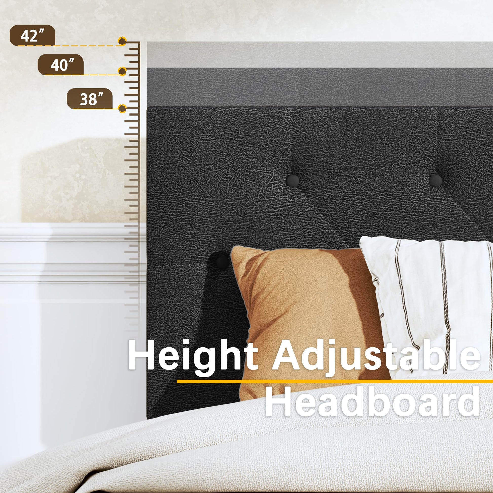- Adjustable Tufted Headboard – Customizable height from 41” to 45” to fit different mattress sizes.