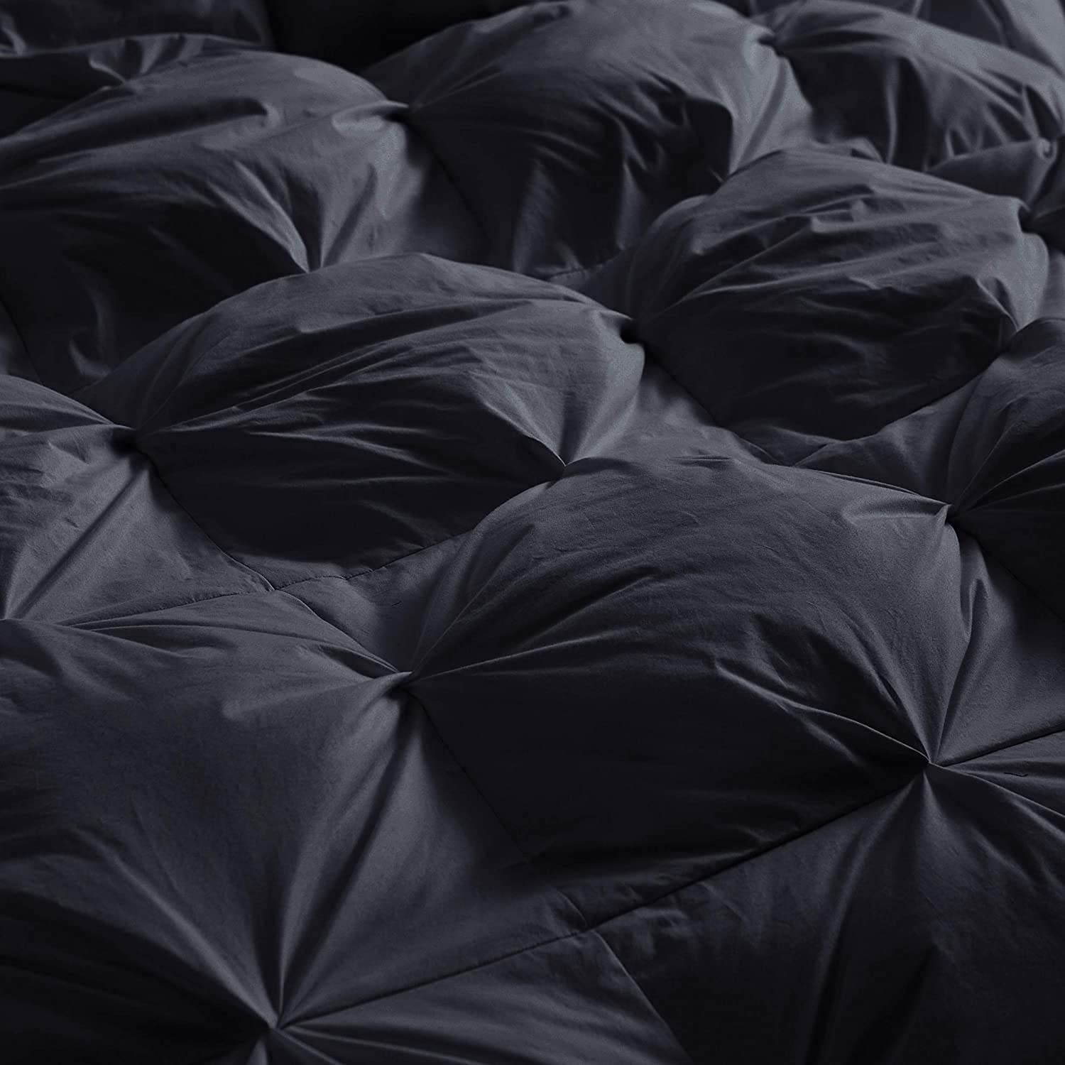 - UNIQUE BLACK Pinch Pleat design brings elegant style and timeless good looks. Luxury down feather fiber comforter is soft, fluffy, warm, breathable, noiseless, medium weight for year-round comfort.