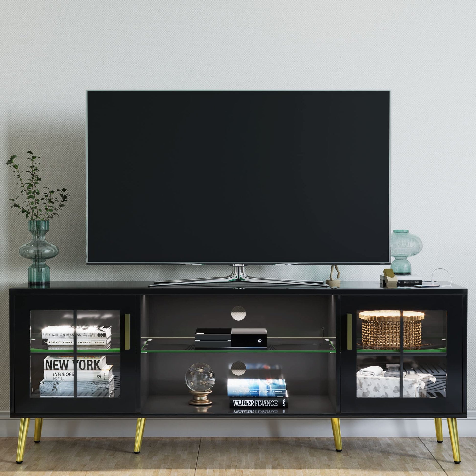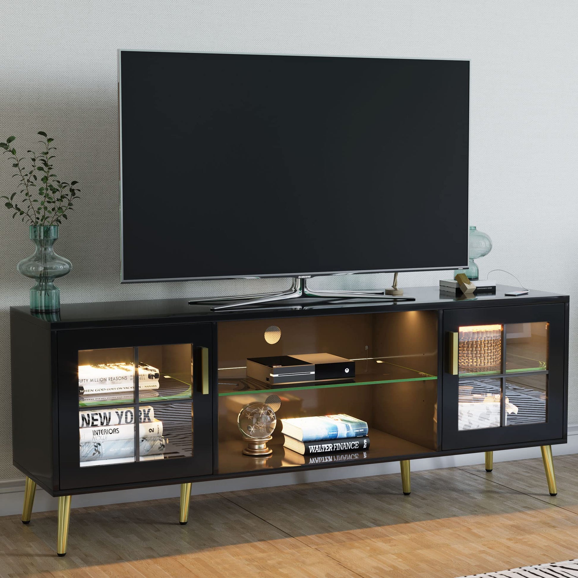 TV Stand Black with 3 Color LED Lights, TV & Media Furniture for Living Room, Media Table