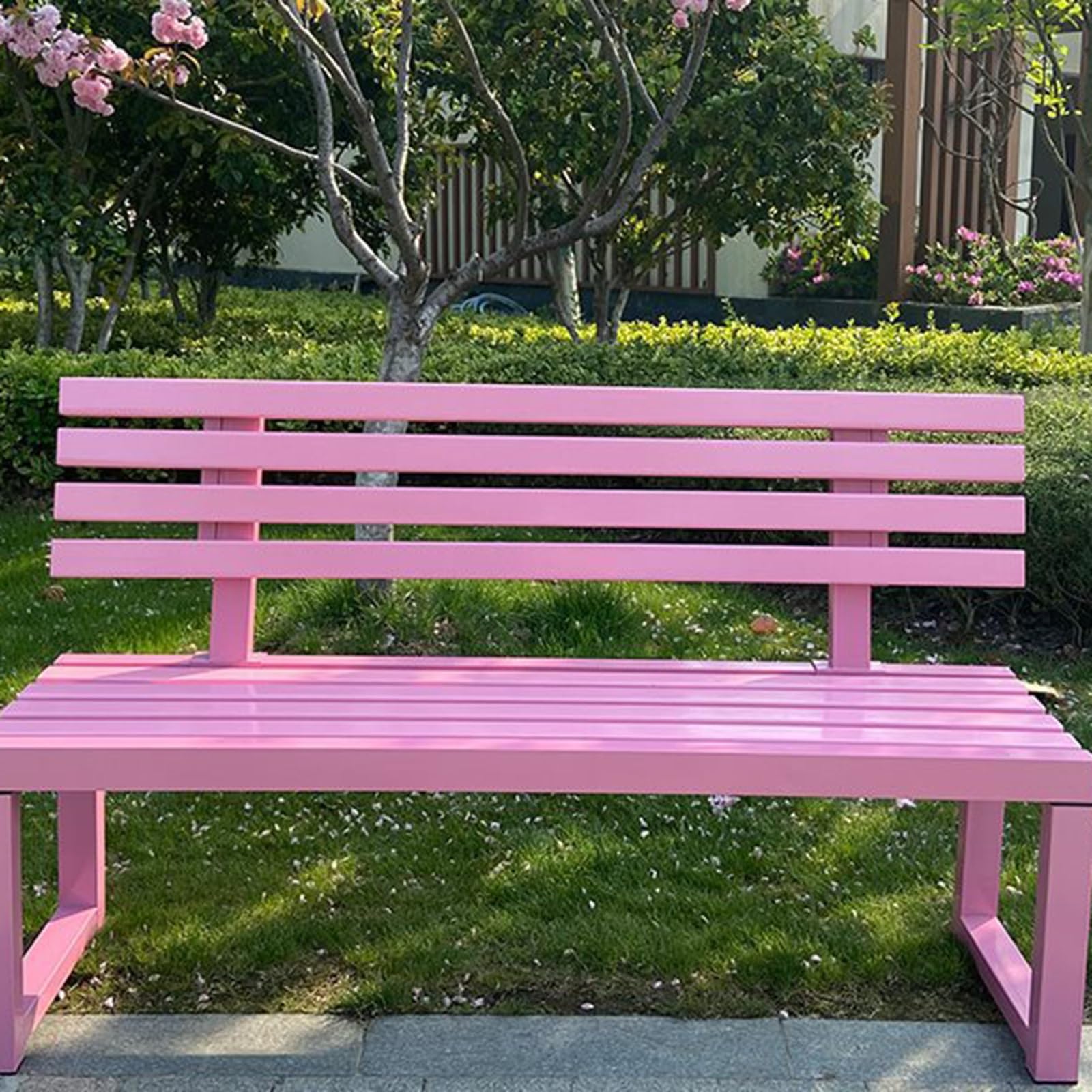 - The pink exterior adds an elegant touch to any outdoor area. Don’t worry, if placed as an outdoor garden bench, it can withstand the changing weather outside.