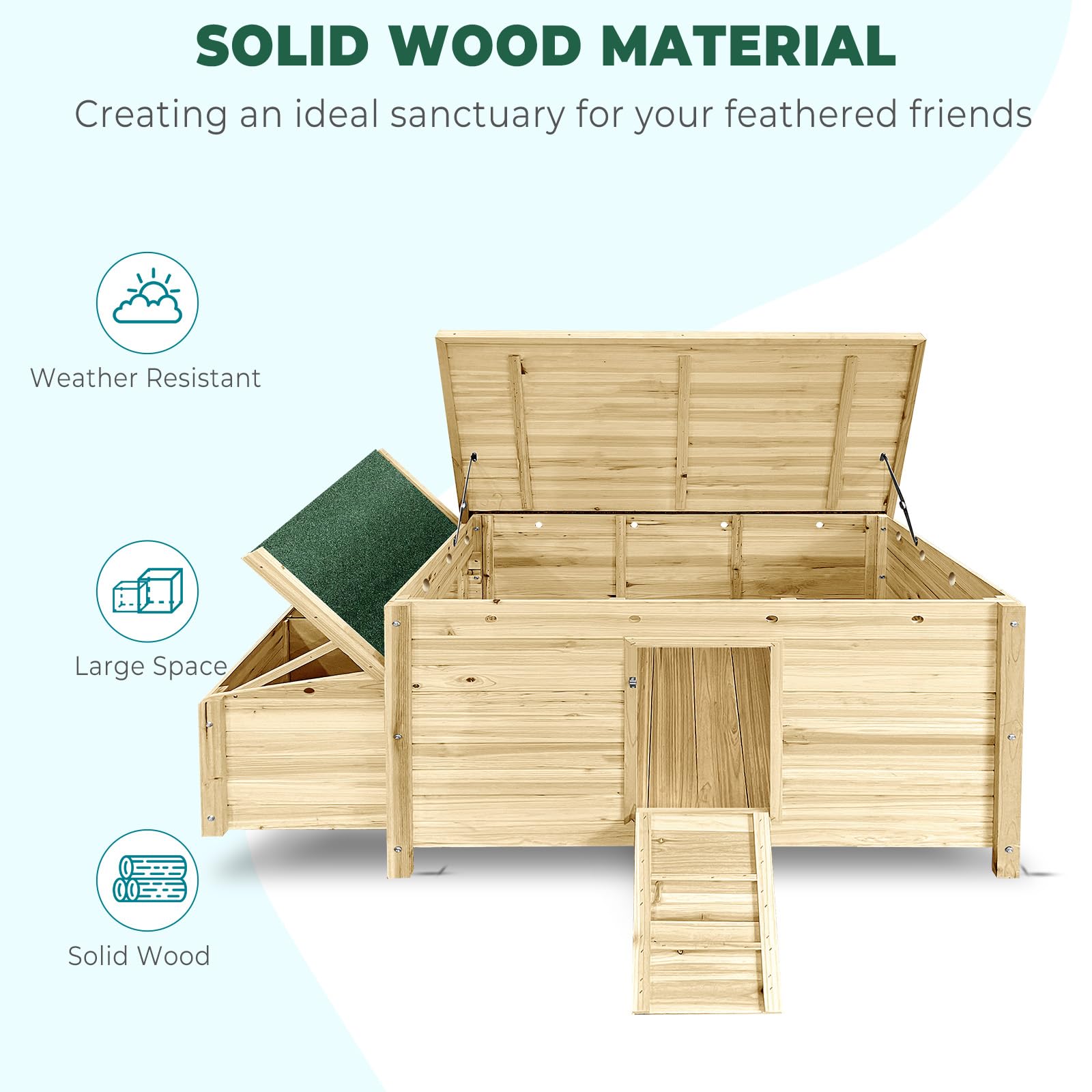 - Lyromix wooden chicken coop is made of high-quality natural fir, and the surface is coated with a layer of non-toxic transparent varnish to preserve the natural wood environment as much as possible. Stable structure and high-quality metal support poles provide a sturdy shelter for your chickens