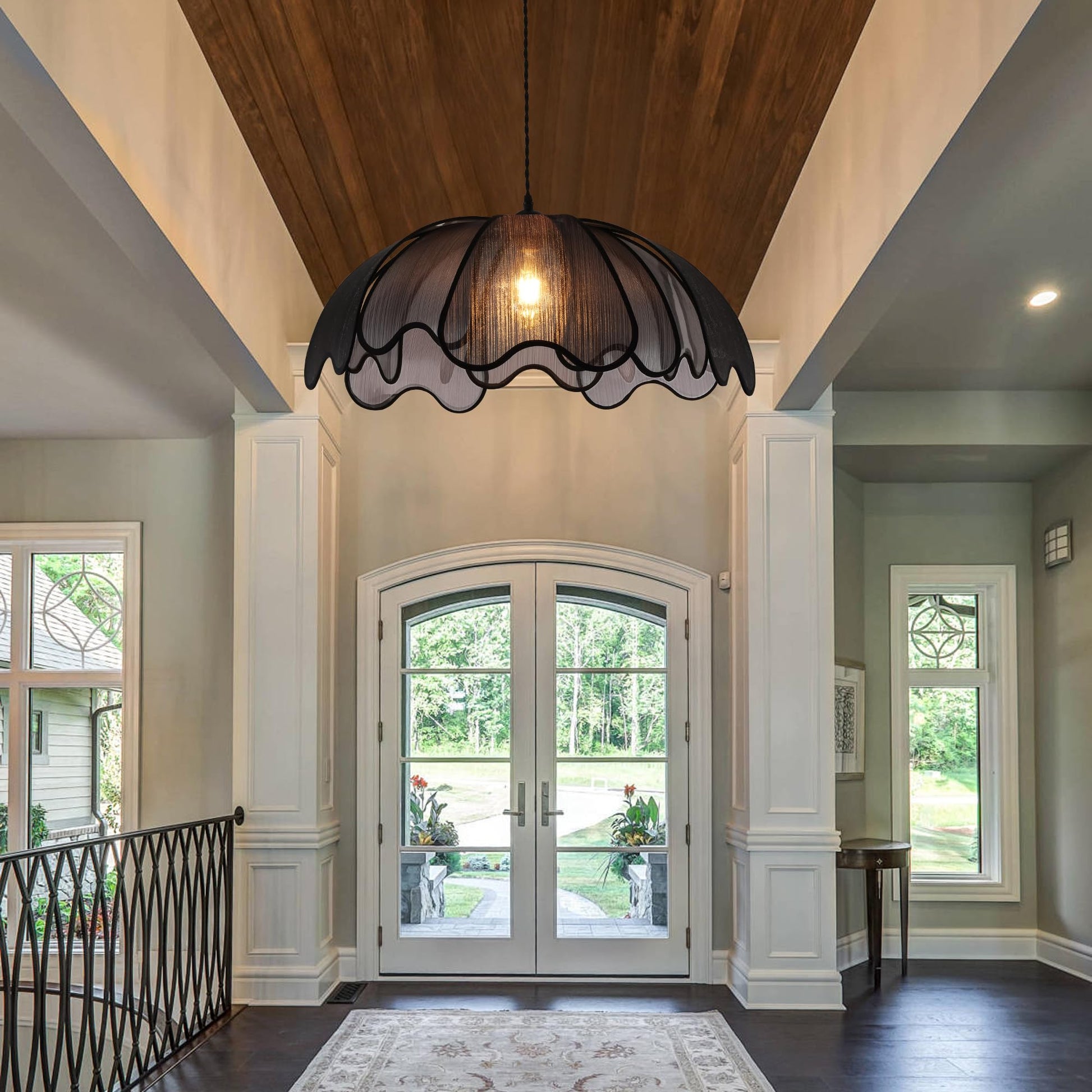 - 【Adjustable Height & Slope Ceiling Applicable】This fabric pendant light comes with a 57-inch twist power cord that is adjustable in height, bringing you more convenience and flexibility. You can adjust the height from 14.5 inches to 57 inches according to your specific needs and ceiling height.