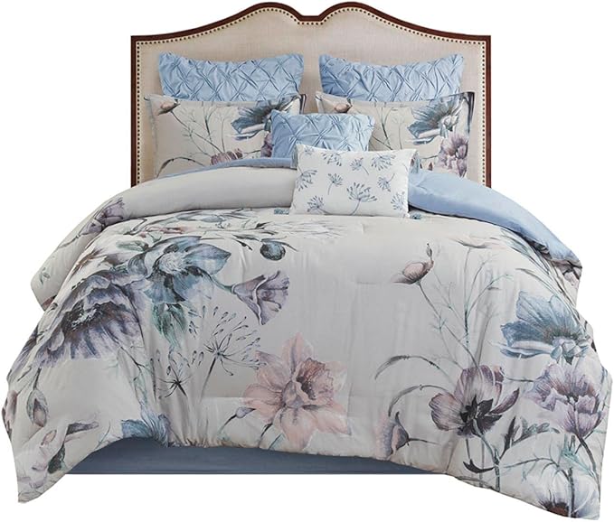 Floral Queen Comforter Set, Cotton Rich Bedding Set Feminine Design Shabby Chic Queen