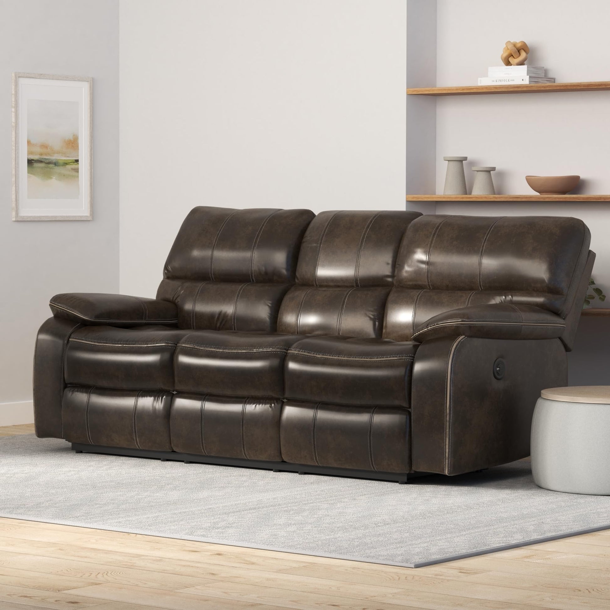Chocolate Brown 84" Power Sofa with Dual Recliners, Microsuede Upholstery, and USB