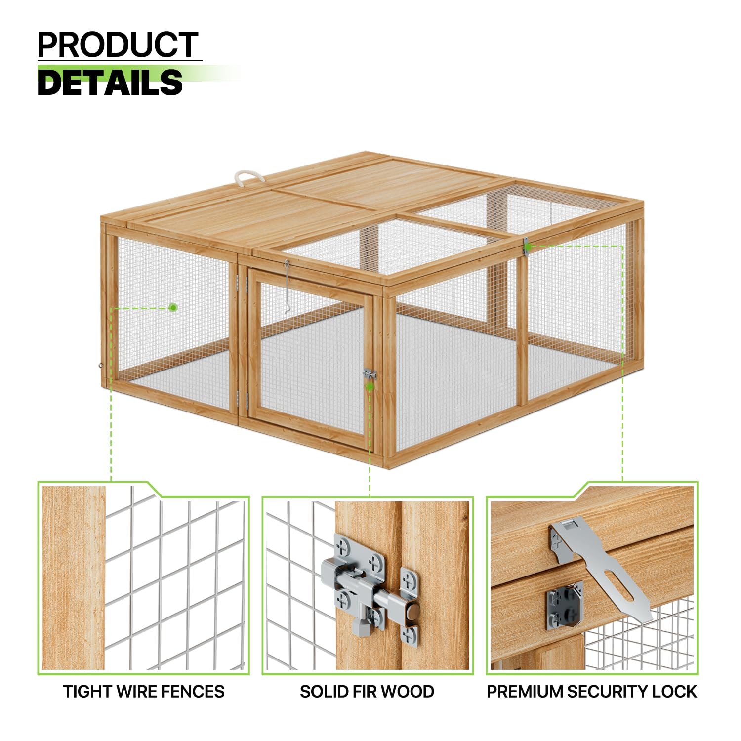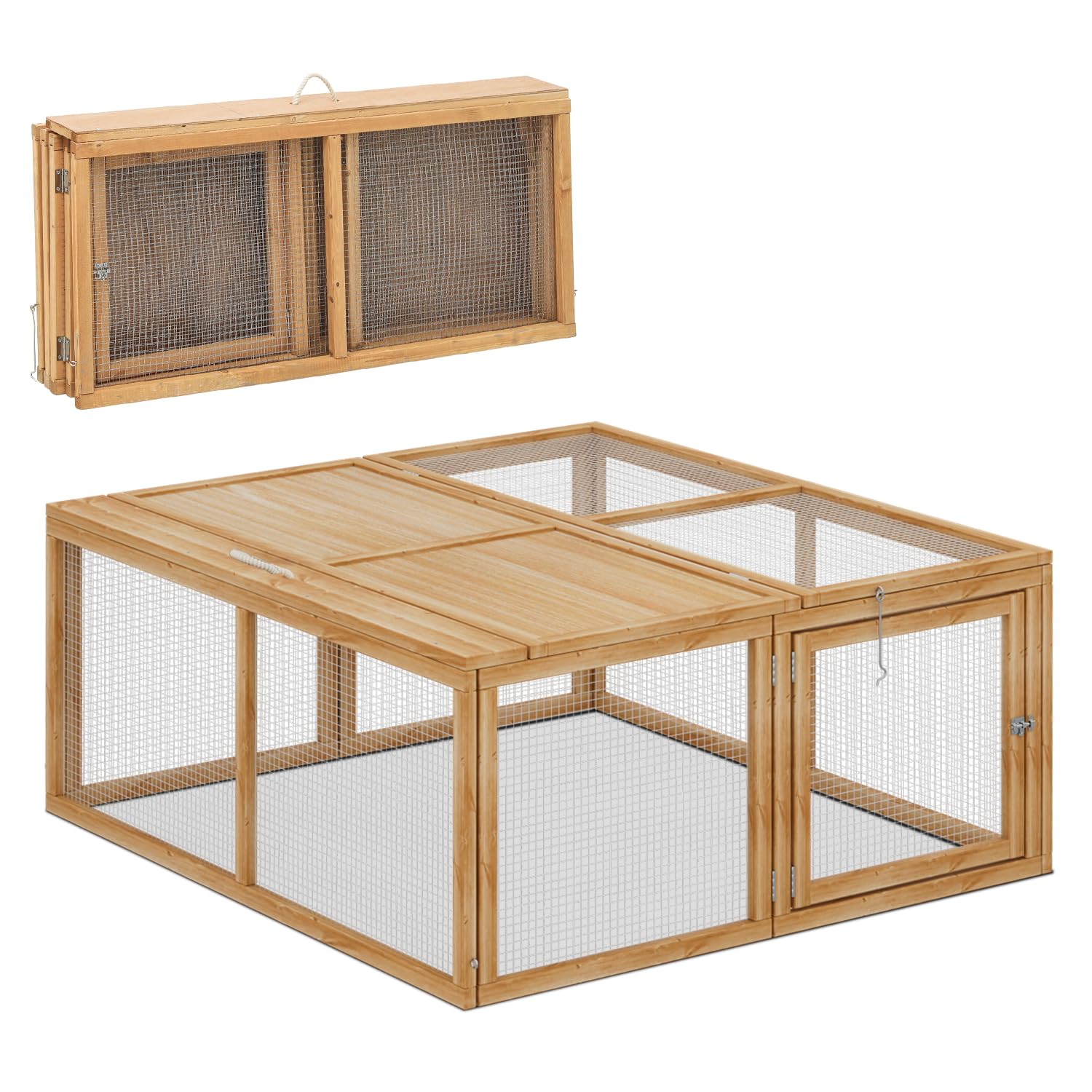 - Foldable Chicken Coop Run: No assembly required, this chicken coop folds up easily for storage without worrying about limited space. Just grab the built-in handle to easily carry the wooden playpen from outdoors to indoors.