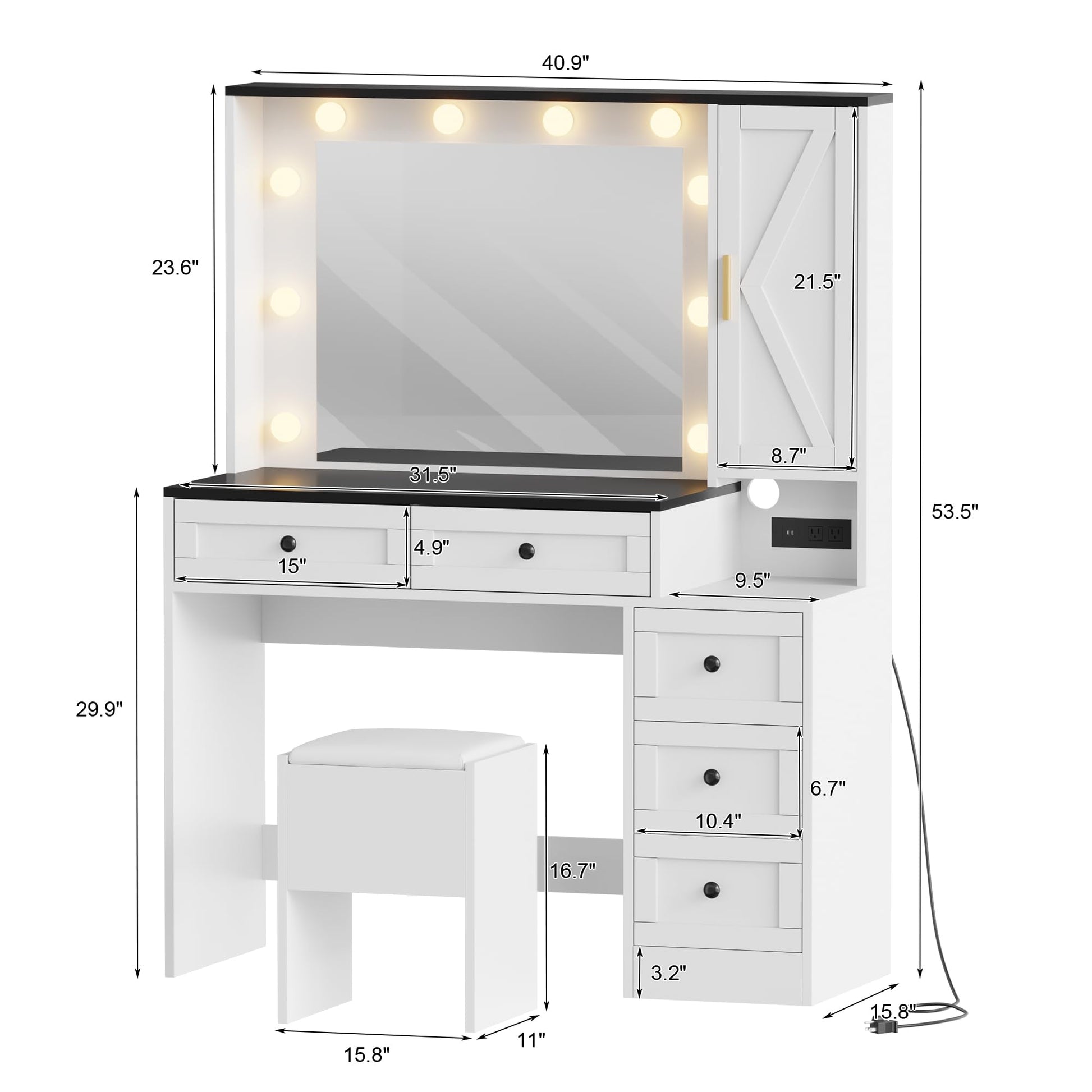 - Vanity With Charging Station: Don't have charging anxiety! This makeup desk is equipped with 2 power outlets and 2 USB ports to let you charge your phone, computer and other electronic devices when you makeup, without worrying about your devices out of power