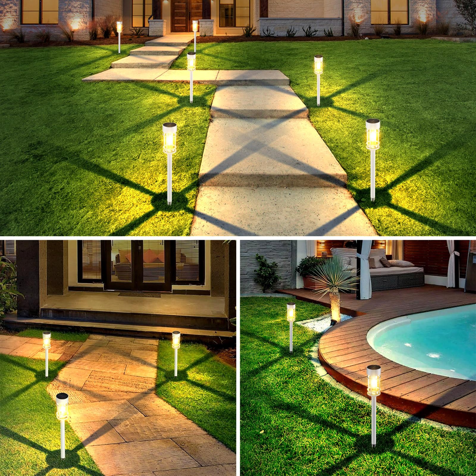 - The set of 8 solar lights offers endless possibilities to illuminate your garden. Their sleek, minimalist design complements any landscape. The solar lights boast an elegant and beautiful white finish, seamlessly integrating with your garden and courtyard. They also make a remarkable products for occasions like housewarming, gardening, birthdays, holidays, and more.