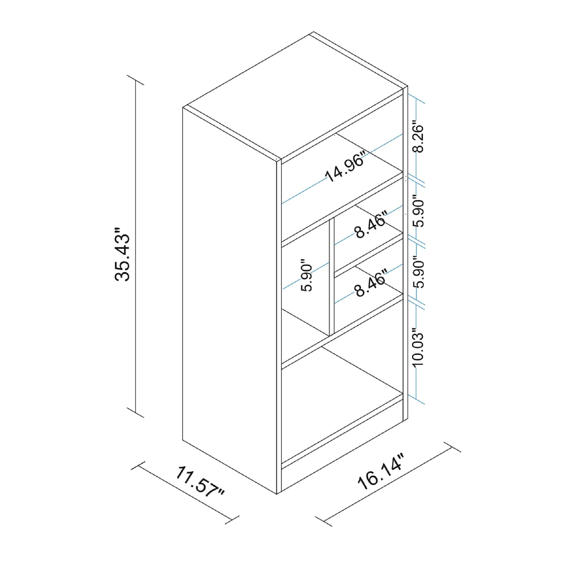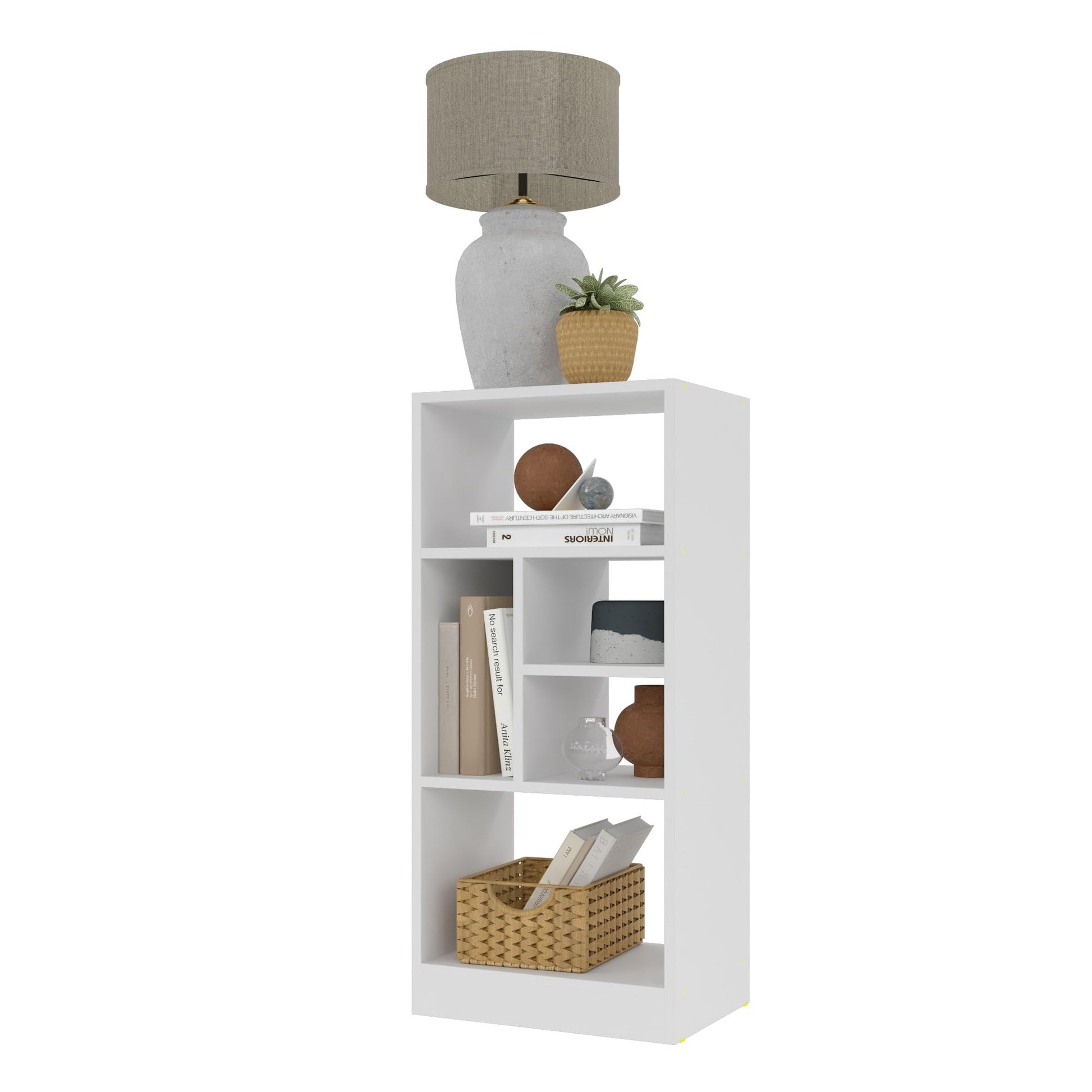 Comfort Valenca 2.0 Bookcase with 5 Unique Shelves, 35-Inch Tall, Space-Saving Mid Century Modern Bookshelf with Open Design, Free Standing Storage Display, Easy Assembly, White