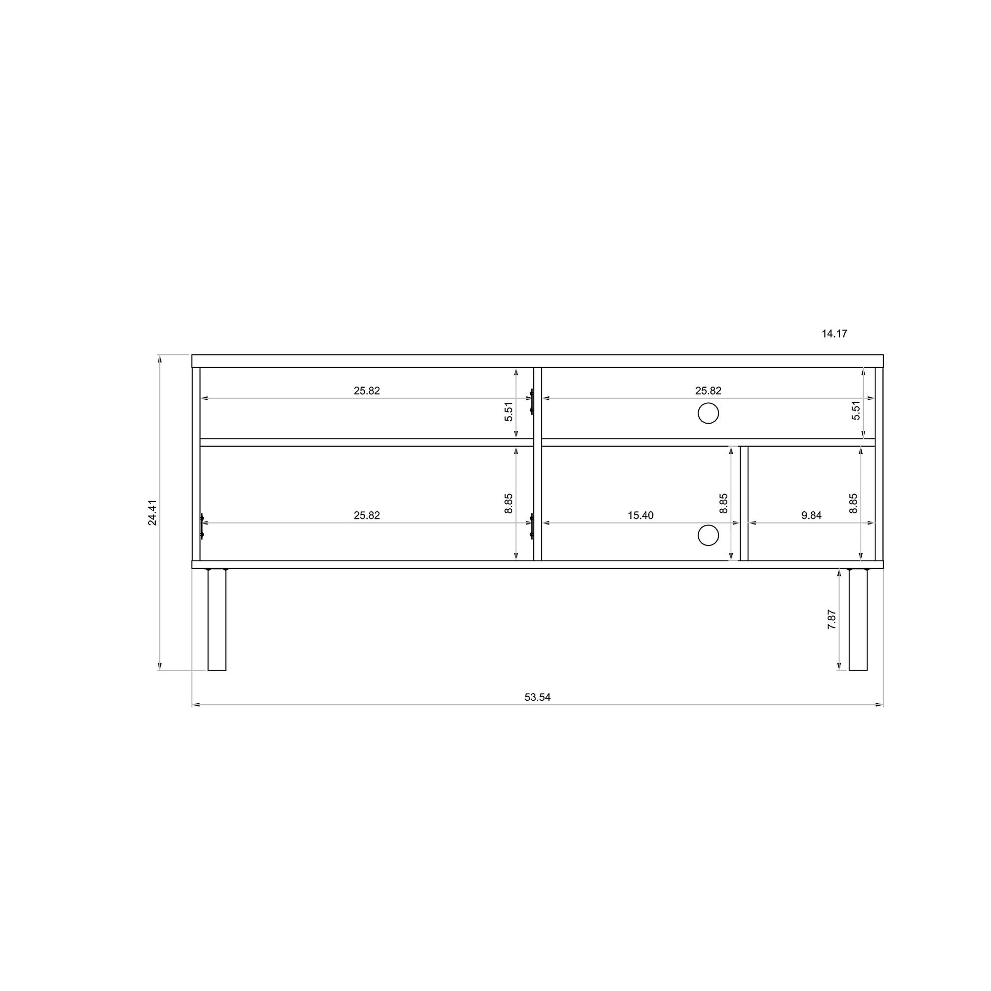 Windsor Modern TV Stand with Media Shelves and Solid Wood Legs, 53.54"