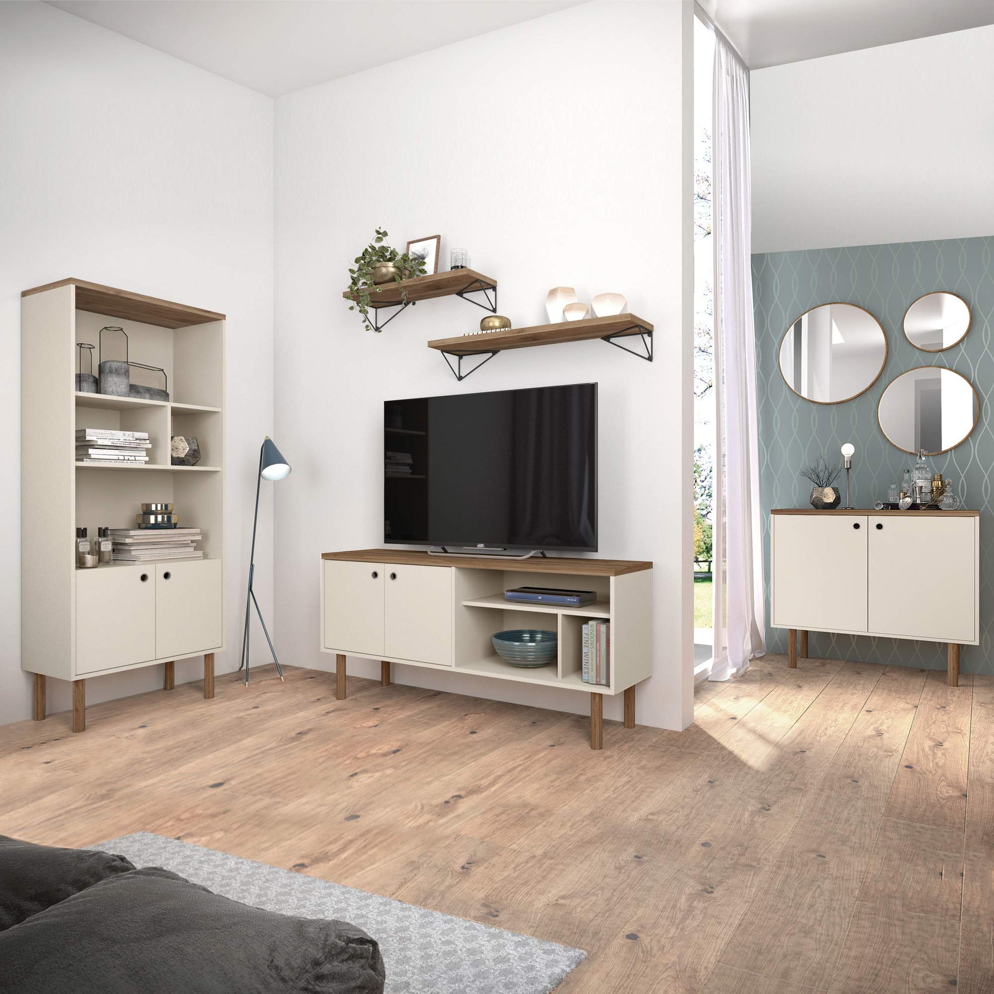 - Have a Stylish, Natural-Inspired Place for Your TV with the Windsor 53. 54 Modern TV Stand by Manhattan Comfort, Featuring Plenty of Storage and Gorgeous Midcentury Modern Design in a Beautiful Off White and Natural Wood Finish.
