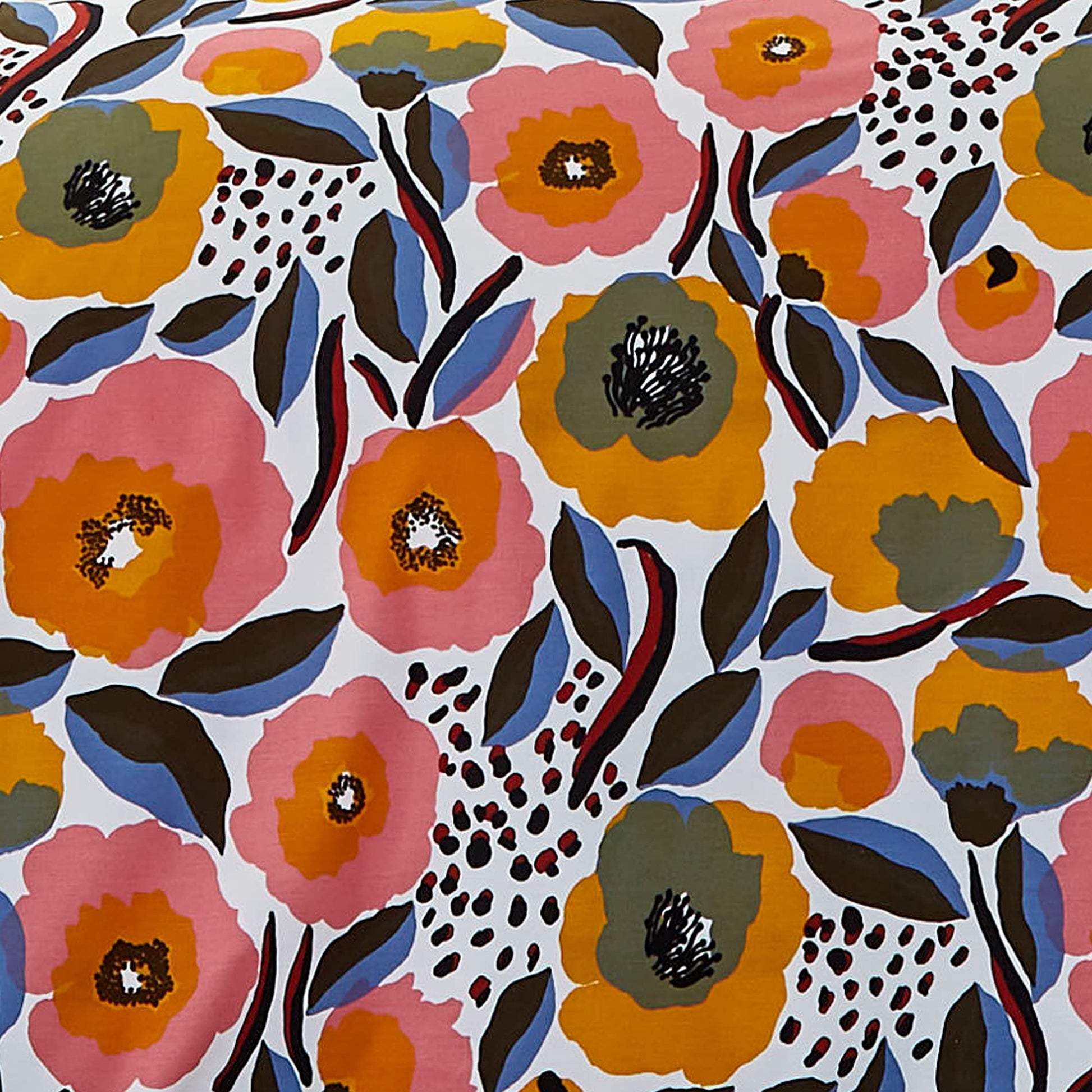 - DESIGN:The Marimekko Rosarium pattern features a multi-color, pink forward floral pattern on a white ground.