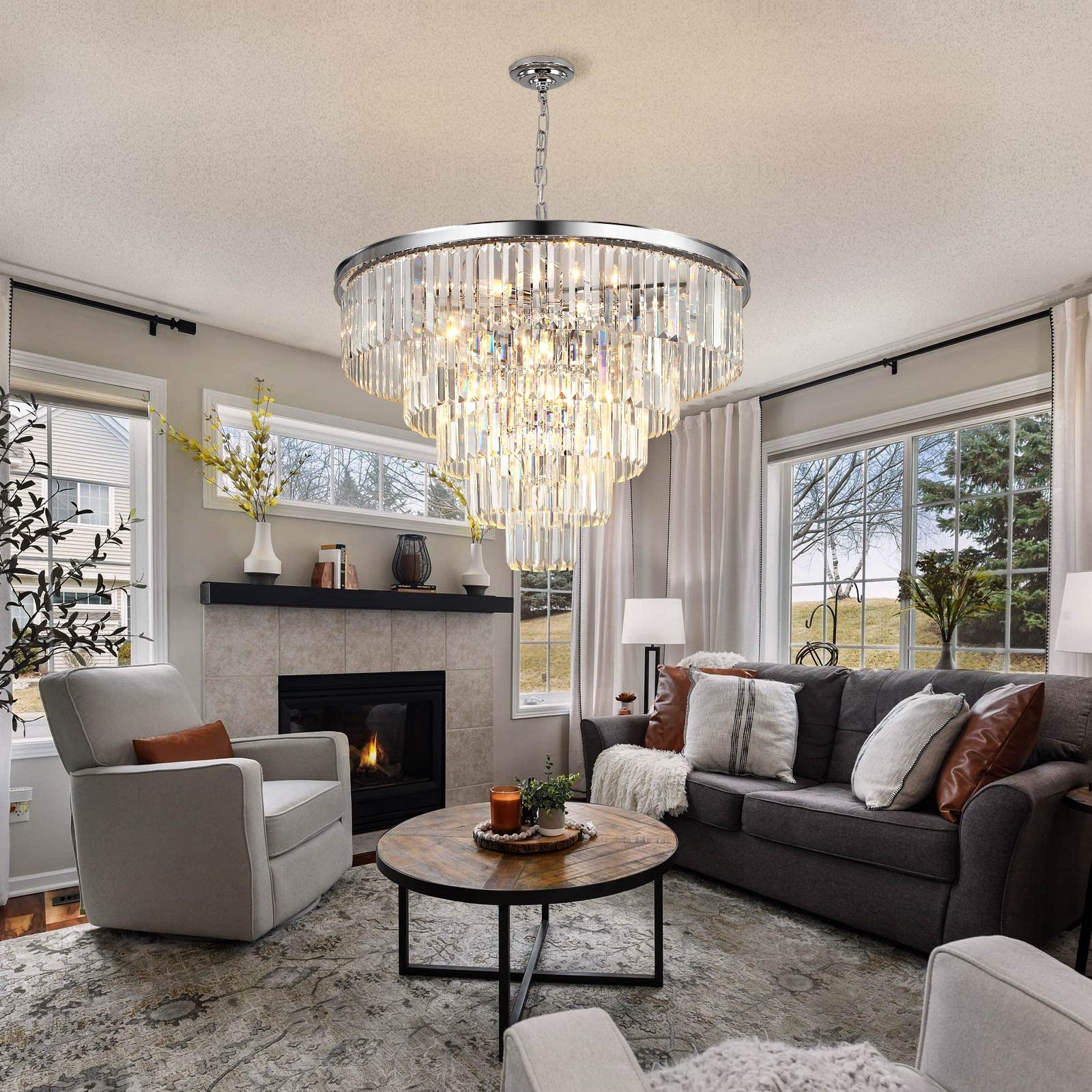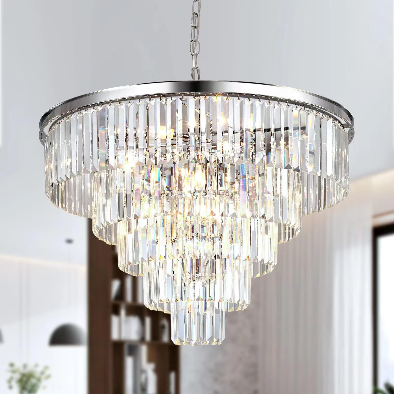 - This 5-Tier large round crystal chandelier is a high-quality craft for room lighting. Adopted high-quality materials and advanced craftsmanship to ensure your product is built to last.