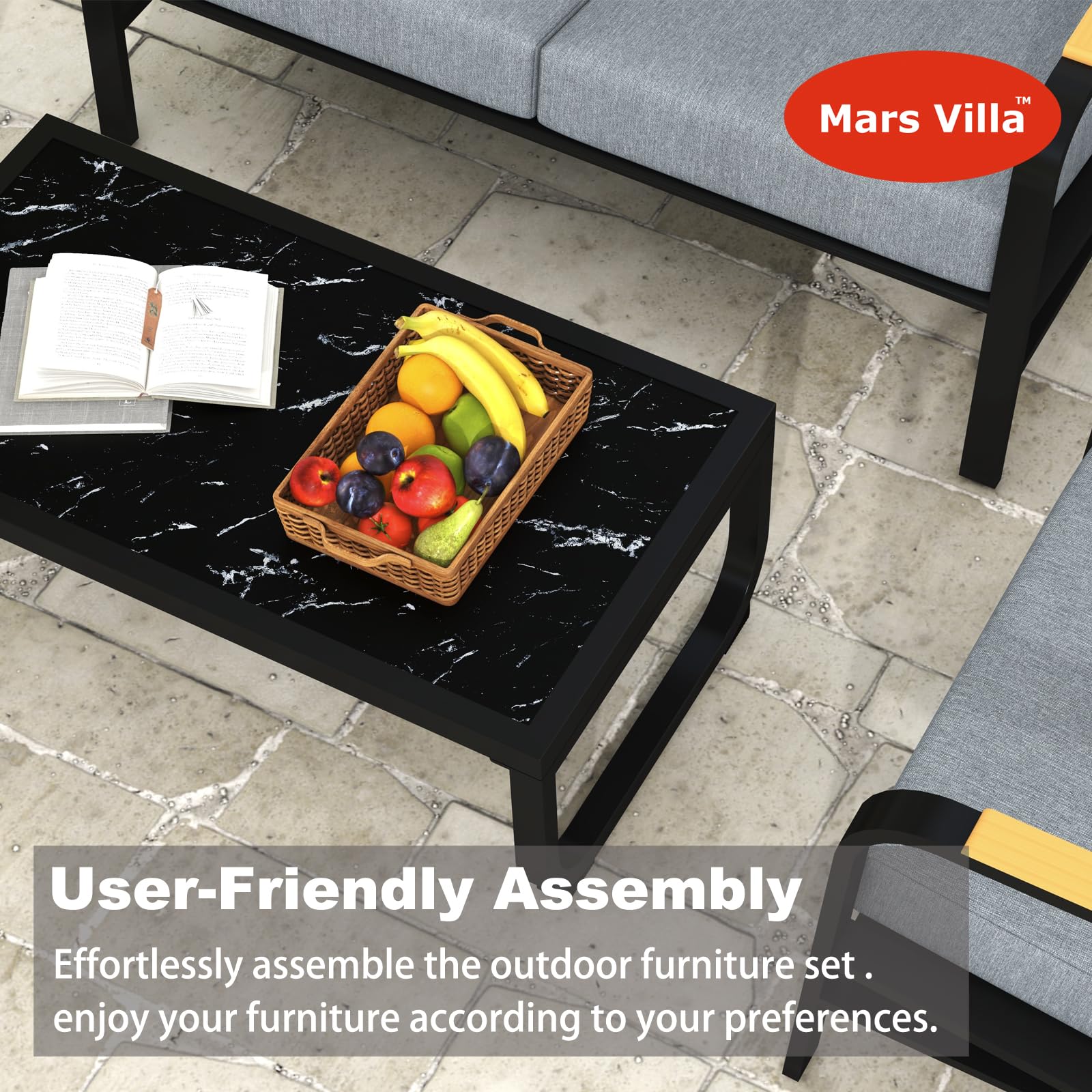 - WARM TIPS: Mars Villa metal patio furniture set is delivered in three boxes, which may not arrive at the same time. If you have any issues, such as missing parts or damage, please reach out to us. We are here to offer you immediate and professional support.
