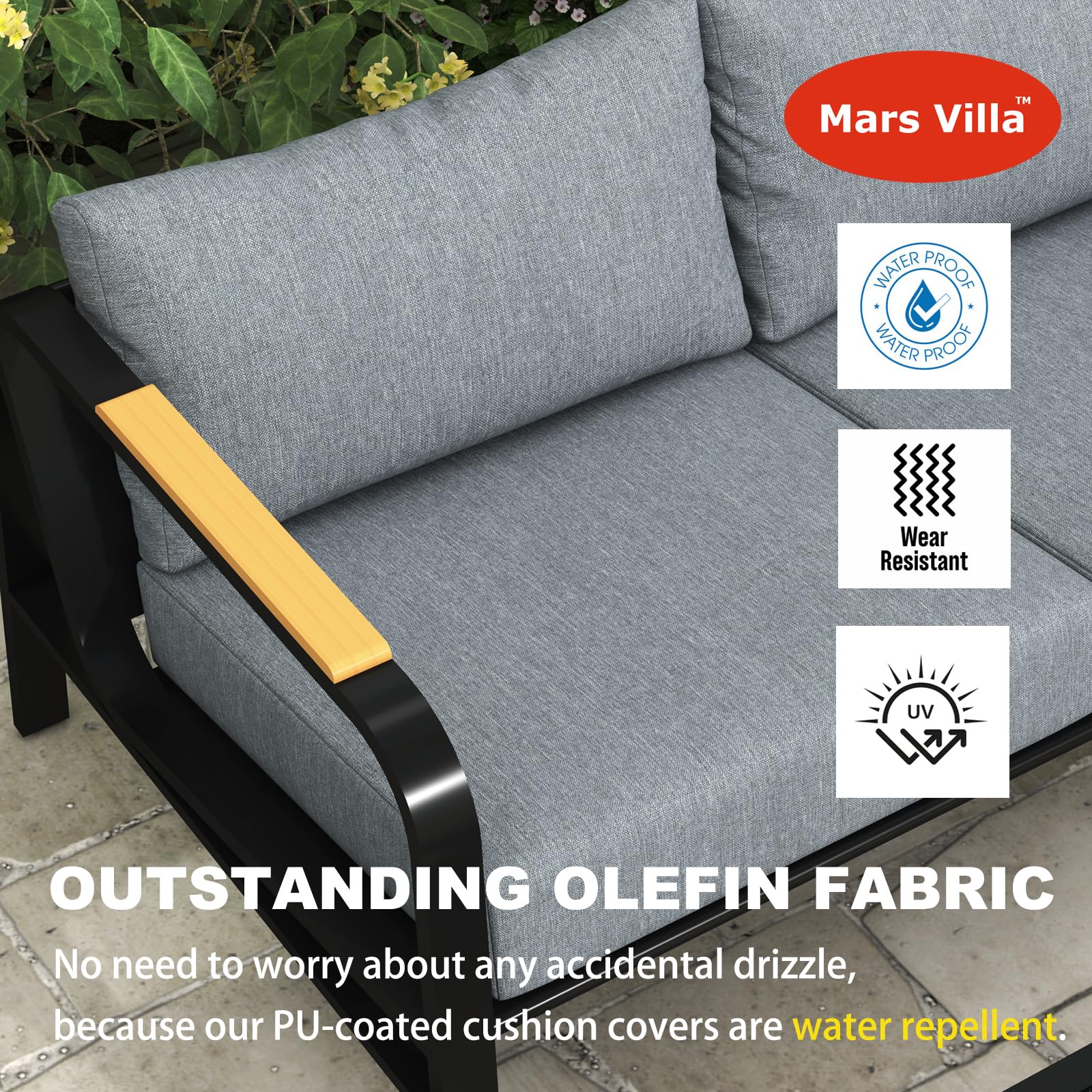 - UPGRADED METAL FRAME: Mars Villa Patio Conversation Set is constructed of high-strength iron pipe. All metal frames adopt 3-step corrosion protection, ensuring superior durability, reliability, and rustproofness. The high-strength iron frame ensures the sofa set's large carrying capacity, with the loveseat supporting up to 700 lbs and the single chair supporting up to 350 lbs.