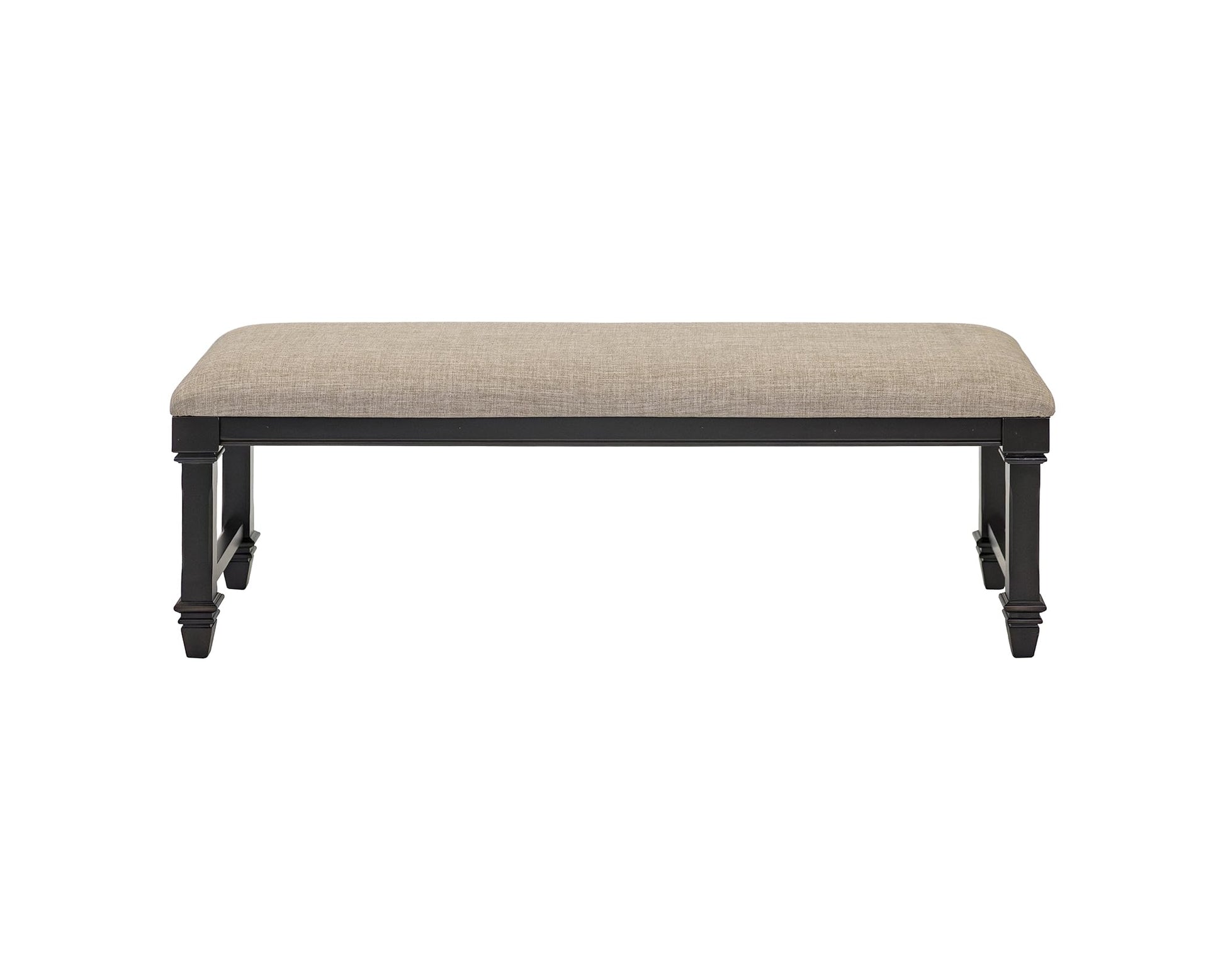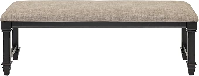- Bench upholstery features a light brown textured linen weave made of 100% Polyester for comfort and durability