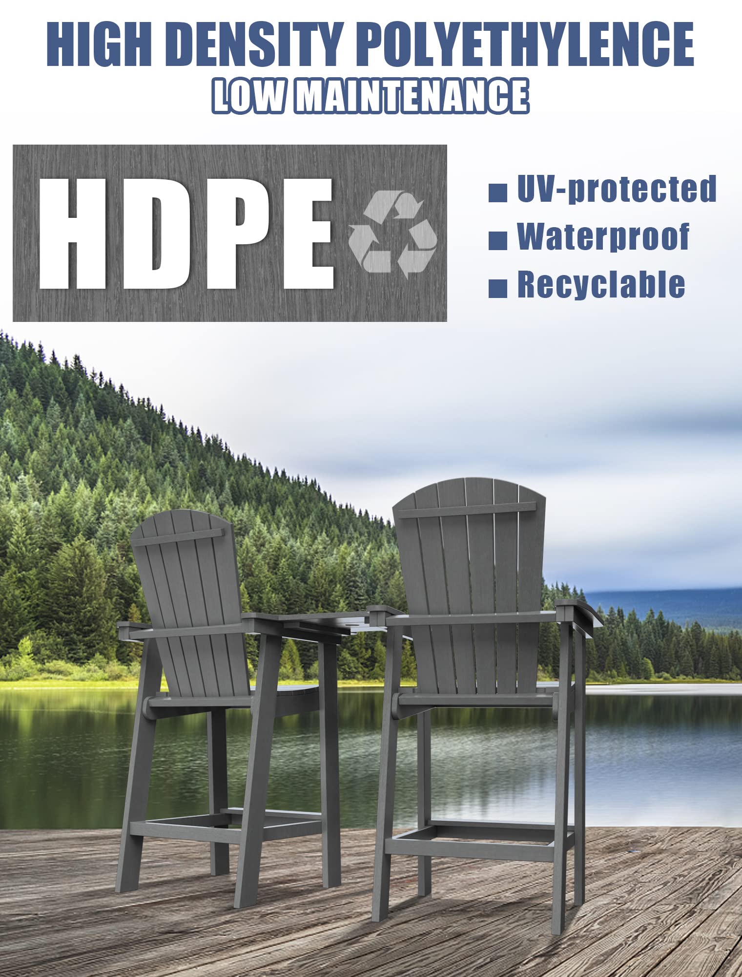 Tall Adirondack Chairs Set of 2, Balcony Chair with Connecting Tray