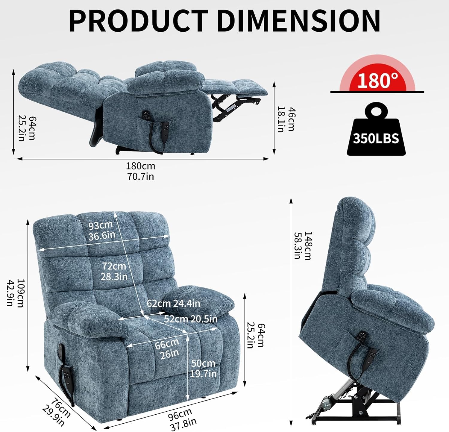 - Special Features: Dual Motor, Massage, Heat, Home Button, Scratch-Resistant Upholstery