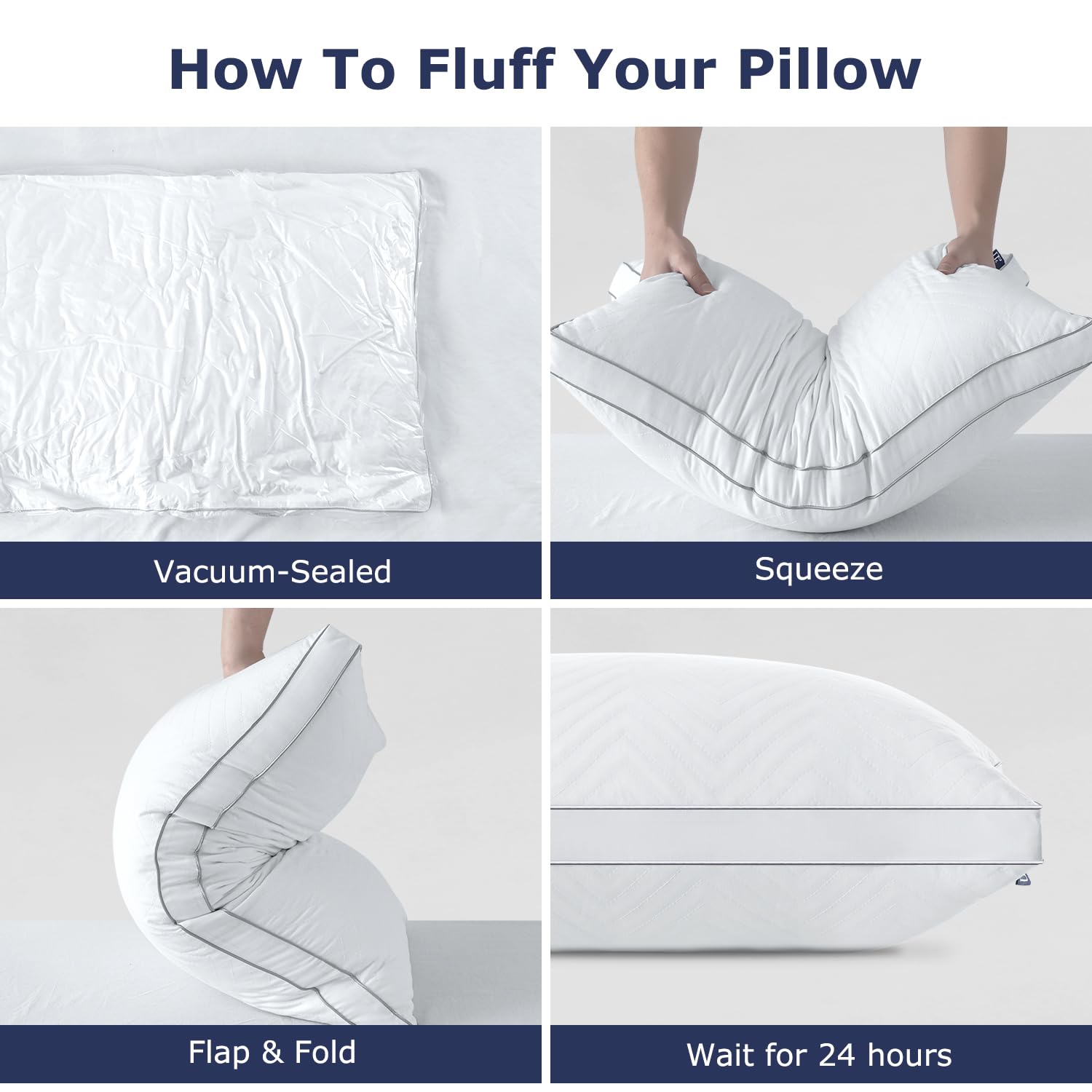- Fluffy Pillow: This hotel luxury pillow is filled with soft and fluffy down alternative, with a soft and fluffy feeling, it is easy to fall asleep and eliminate your tiredness all day long! Soft, lightweight microfiber recreates the luxurious feel of real down for an amazingly huggable soft experience.