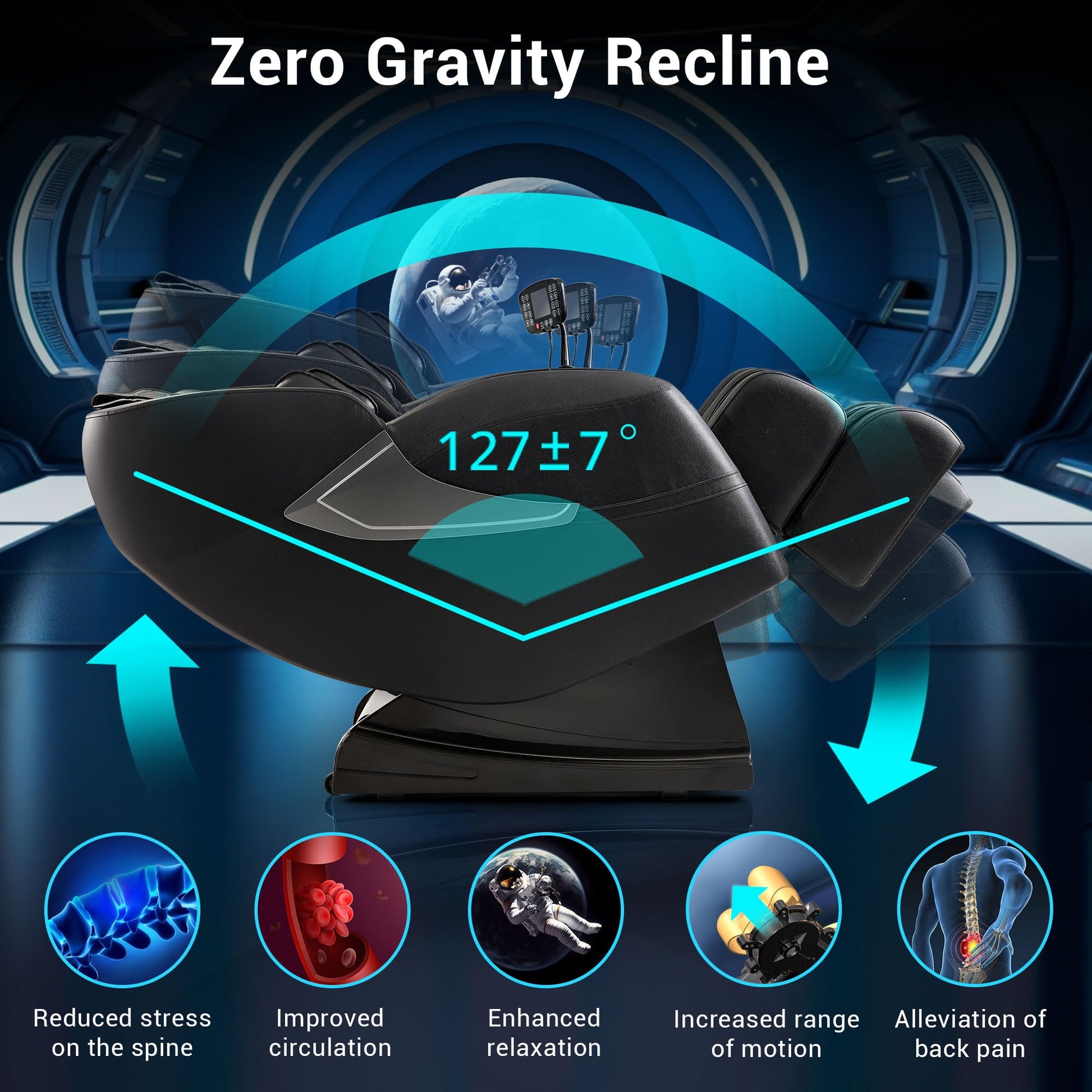 - Zero Gravity Massage Chair One button zero gravity, giving you a weightless feeling during your massage. The zero-gravity recline helps reduce the stress on the back, evenly distributing the weight and pressure.