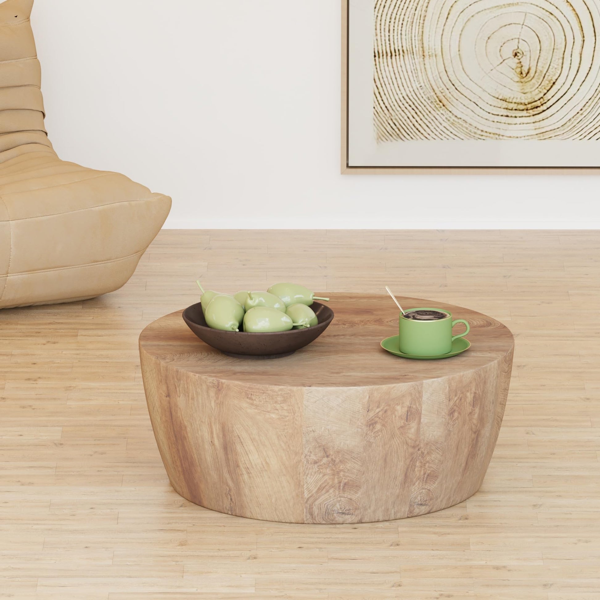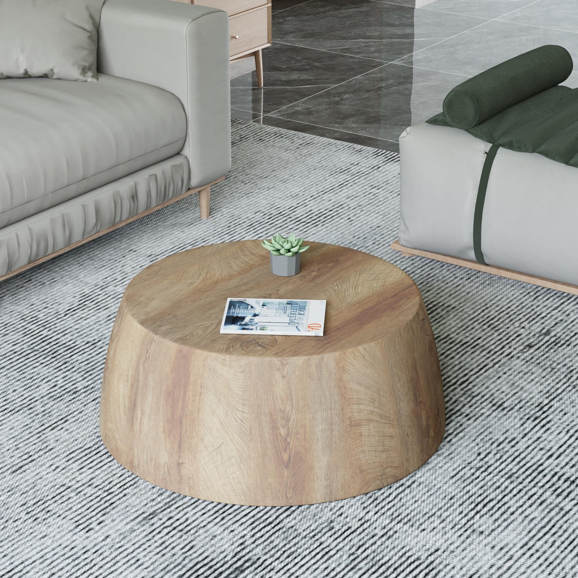 Drum Coffee Table, Modern Industrial Wooden 29.53" Round Coffee Table