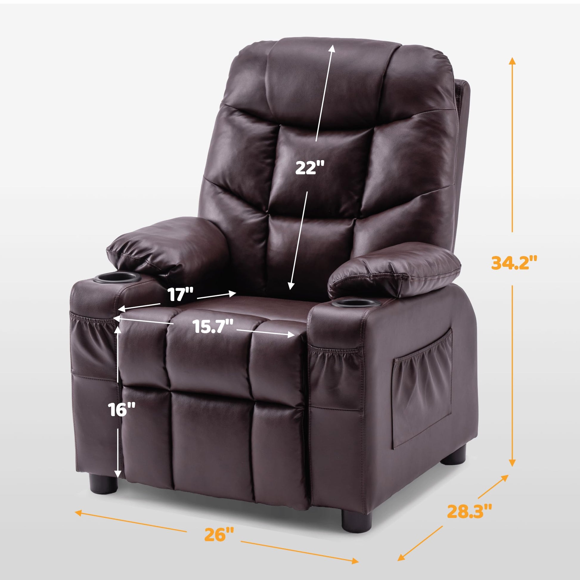- 2 Cup Holders & 4 Side Pockets: Keep your kids favorite drinks and books surrounded with 2 cup holders and 4 side & front pockets. Kids can read books in bedroom or watch TV in living room on their own recliners