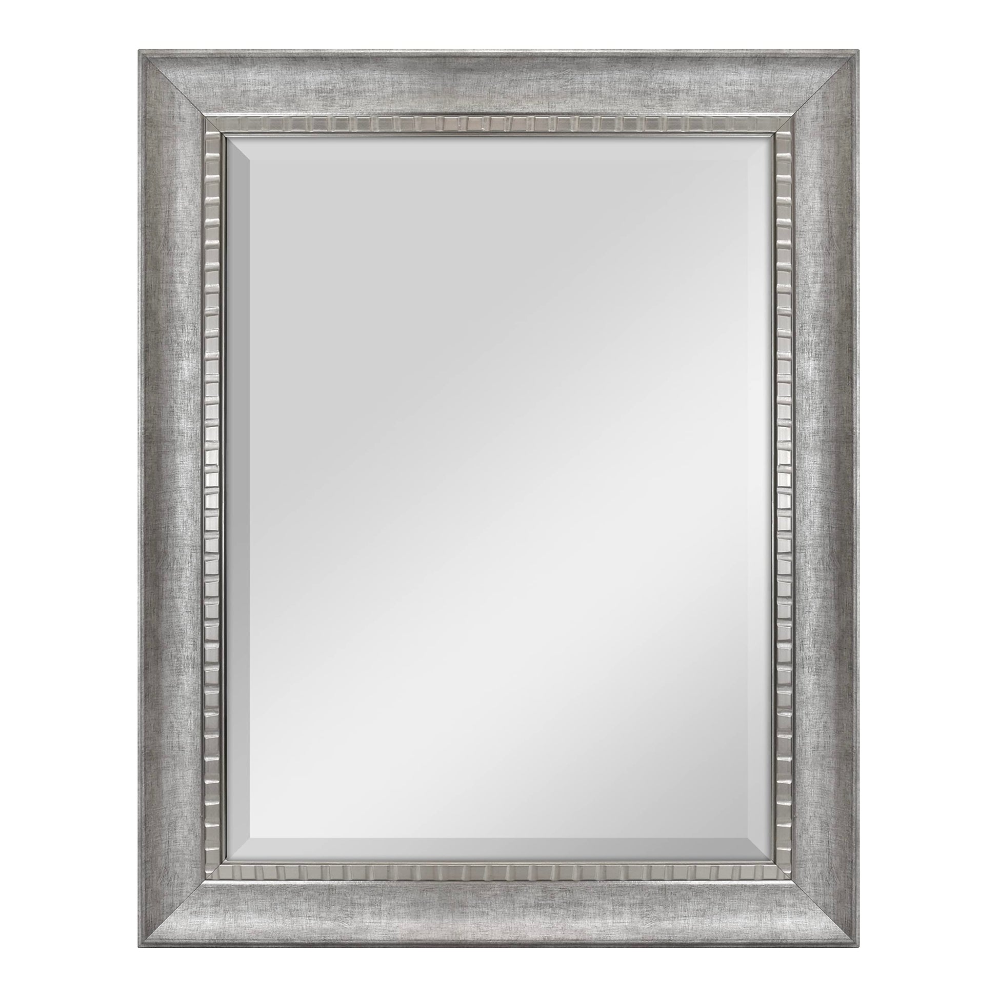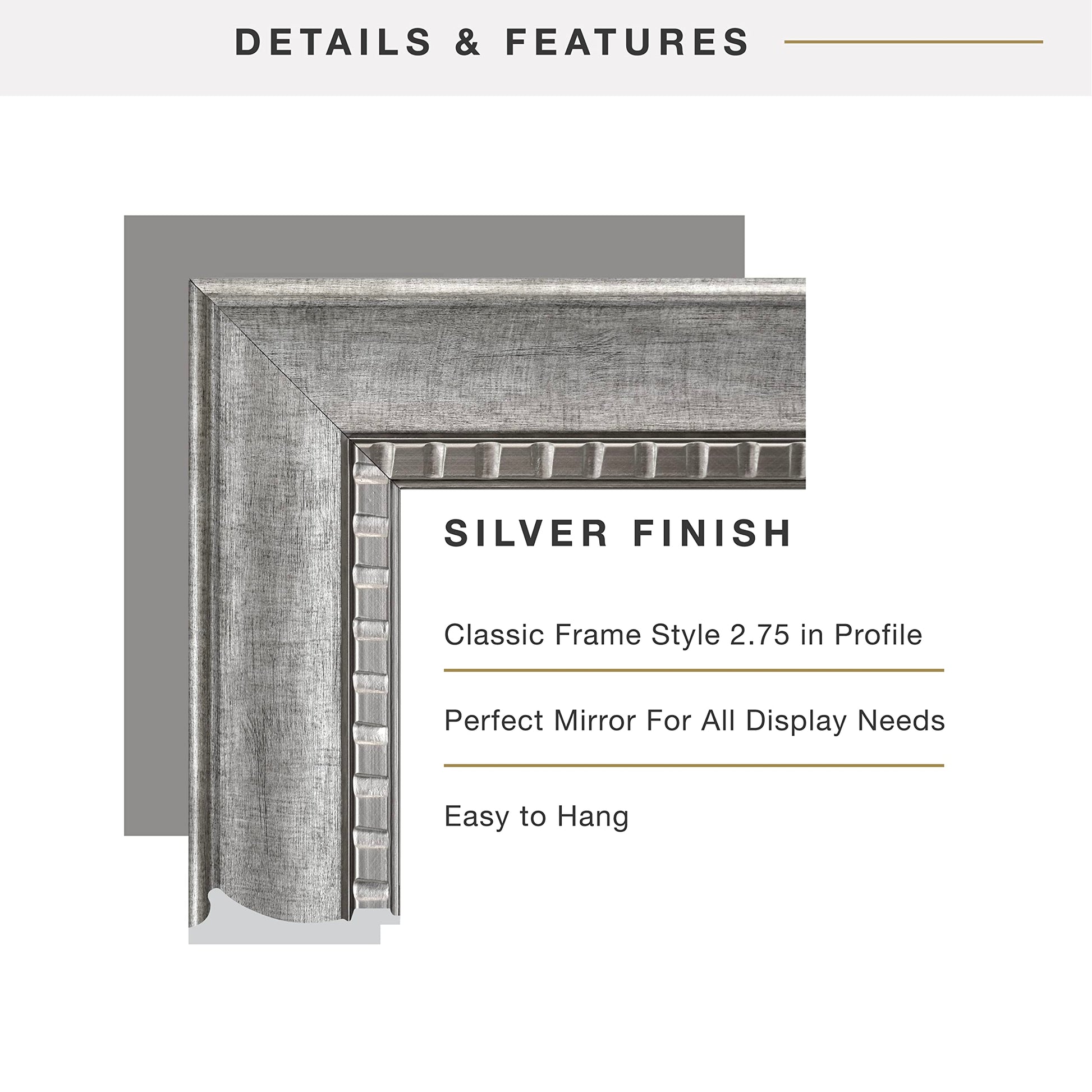 - The 3 inch wide frame has a brushed antique silver finish with silver dentil molded inner edge