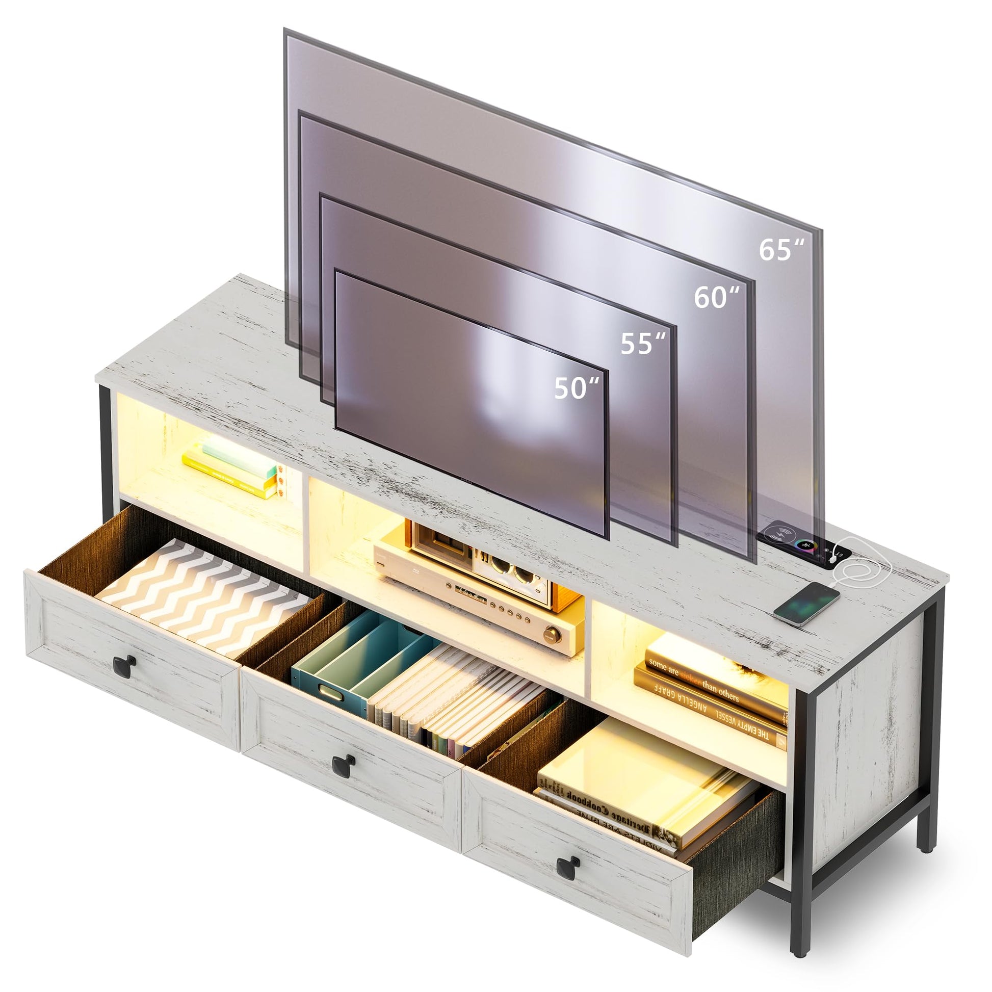 - 3-In-1 Charging Station The television stand is equipped with a wireless charging station and 1 USB + 1 TYPE-C port. The user-friendly design makes your life more comfortable