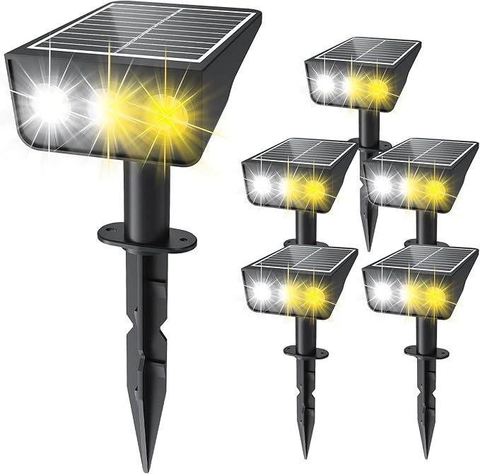 - Upgraded 2-in-1 Outdoor Lights: Solar outdoor lights feature six impressive 1W LEDs that create a stunning lighting accent wherever you place them in outdoor space. These solar lights charge efficiently during the day using a high-performance solar collector, providing bright and long-lasting illumination at night. Installation is a breeze, as these wireless outdoor lights require no complicated wiring. Ideal for anyone seeking an eco-friendly and hassle-free lighting solution for their yard or garden. NOTICE: The performance of the solar-powered lights can be influenced by ambient light intensity. For optimal results, we recommend installing the solar lights in a well-lit outdoor location.