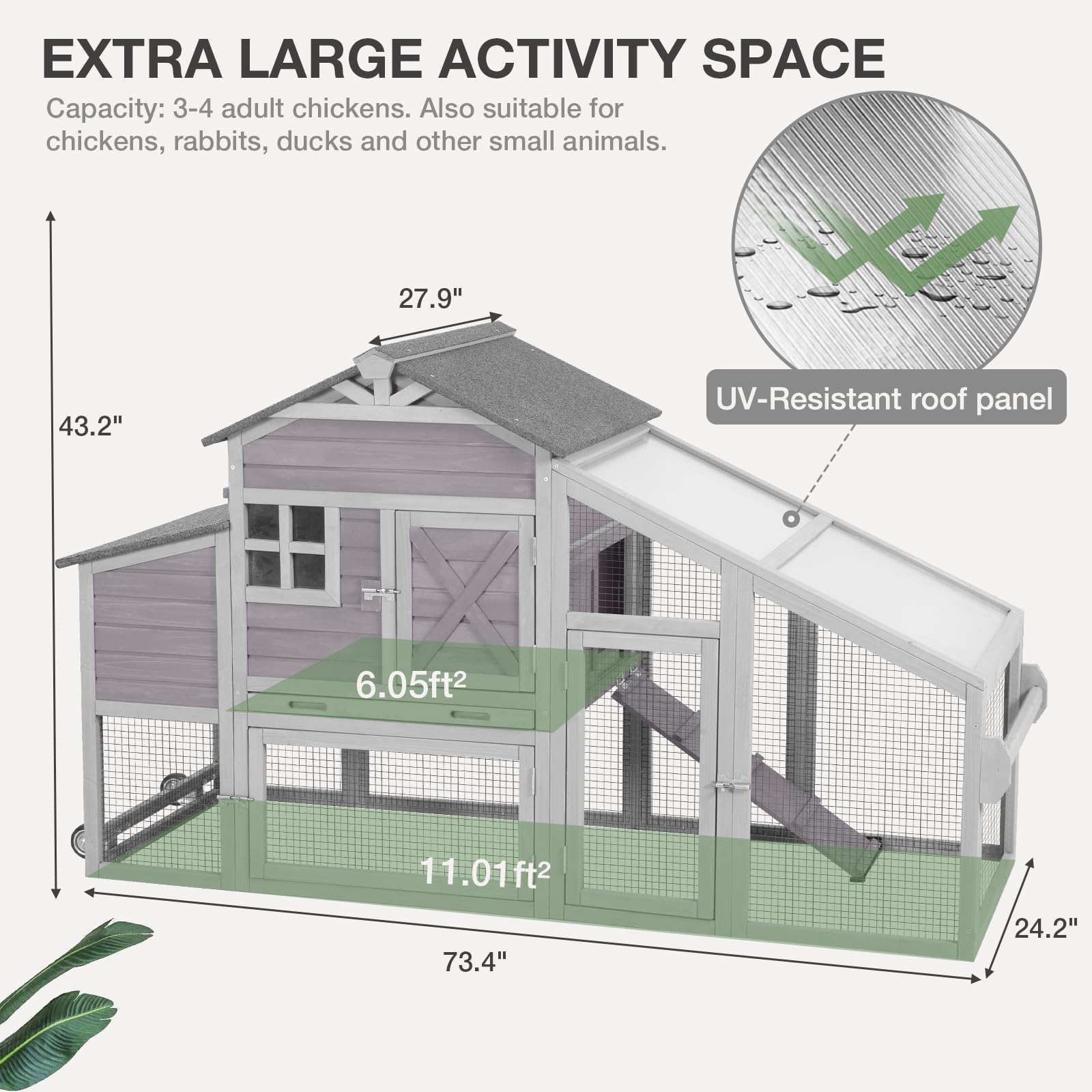 - Easily move this hen coop from place to place thanks to durable, built-in wheels with a convenient handle on the side. Other chicken cage cannot be moved at all !
