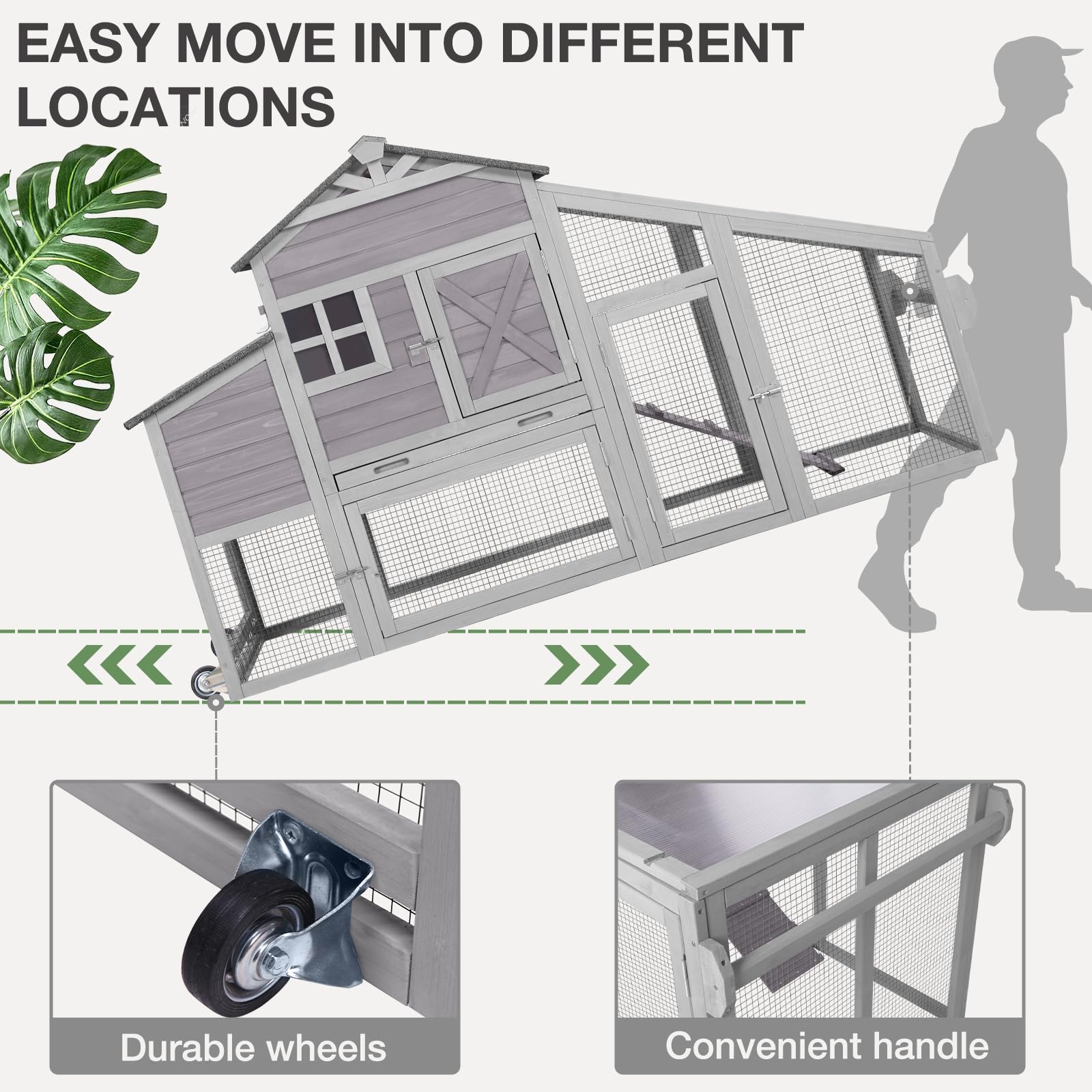 Chicken Coop with Wheels Wooden Outdoor Chicken House Easy Cleaning