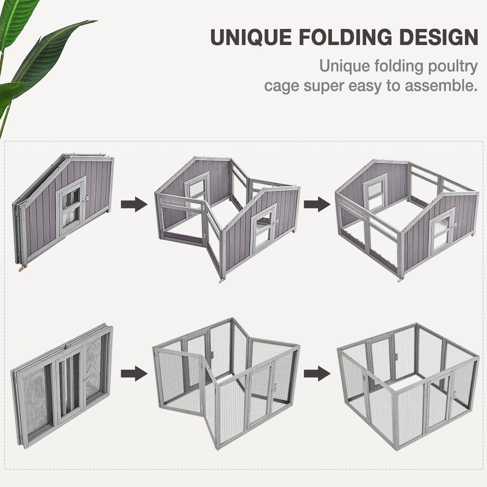 - 🐔【Folding Design】: Unique folding Design chicken coop, super easy to assemble and set up, only by few steps approximately 30min.