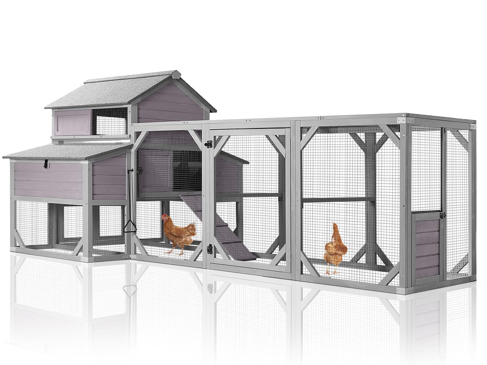 - Multiple openable doors and a removable leakproof tray are easy to clean for pet poop and urine. An extra large playpen under the nesting box allows chickens to roost and roam and also prevents egg thieves