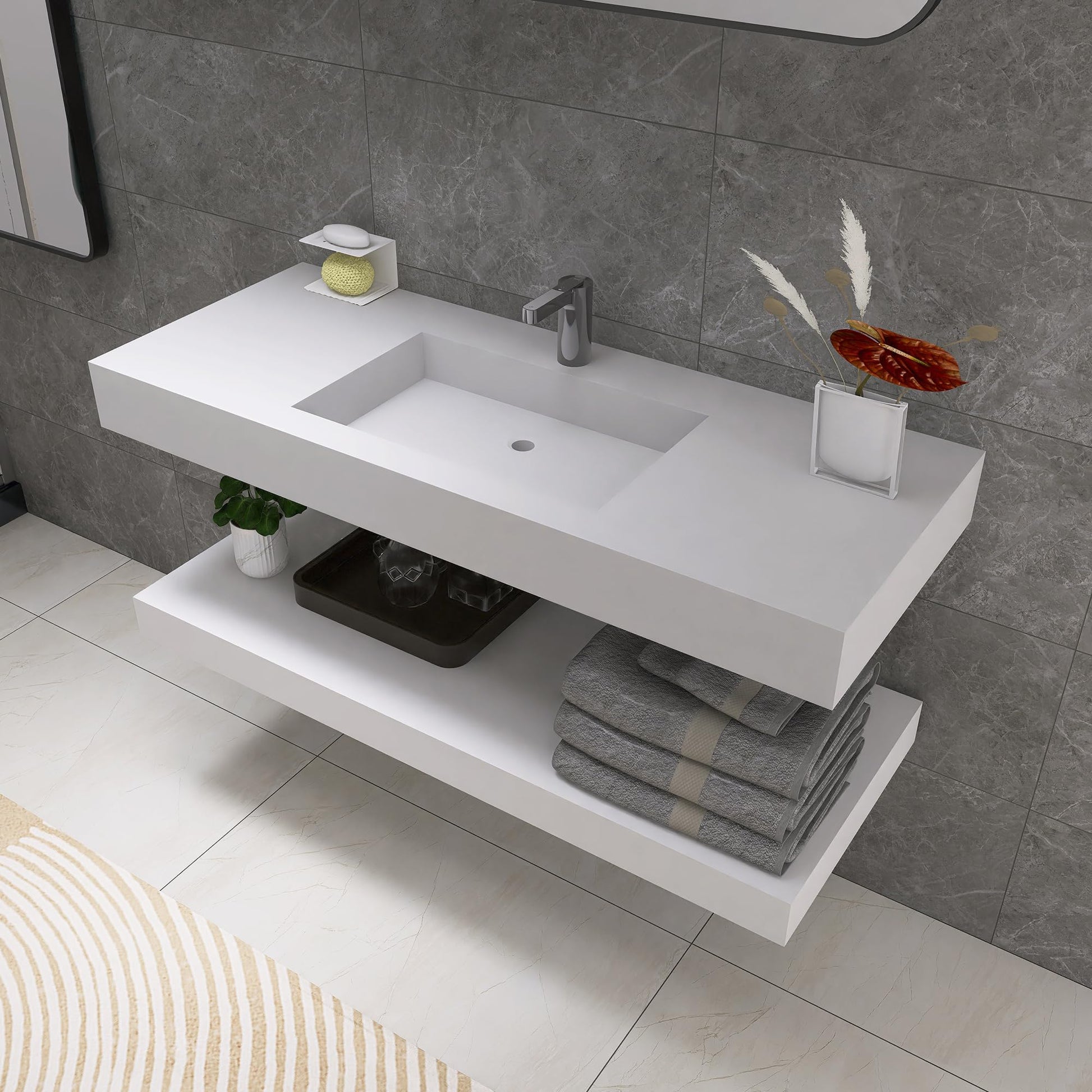 - Space-saving design: The MEDUNJESS 47 inch Wall Mount Floating Vanity with Sink is a wall-mounted bathroom sink that creates a sleek and floating appearance, saving valuable floor space in your bathroom