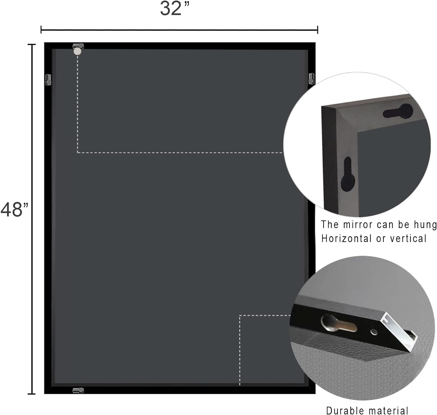 - BLACK FRAMED MIRROR: The large vanity mirror equipped with hanging hardware on the back. The wall mirror can be hung vertically or horizontally. Besides, the retangular mirror can be leaned to the wall as decoration.