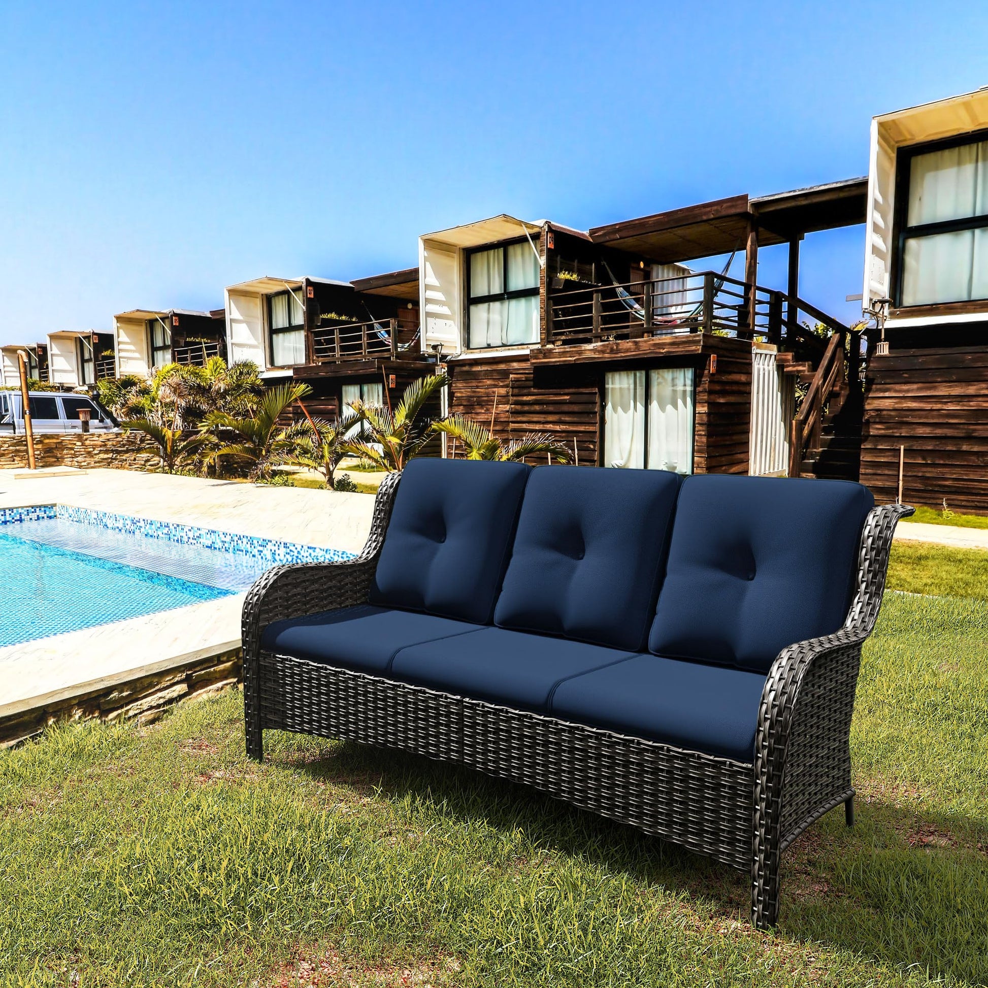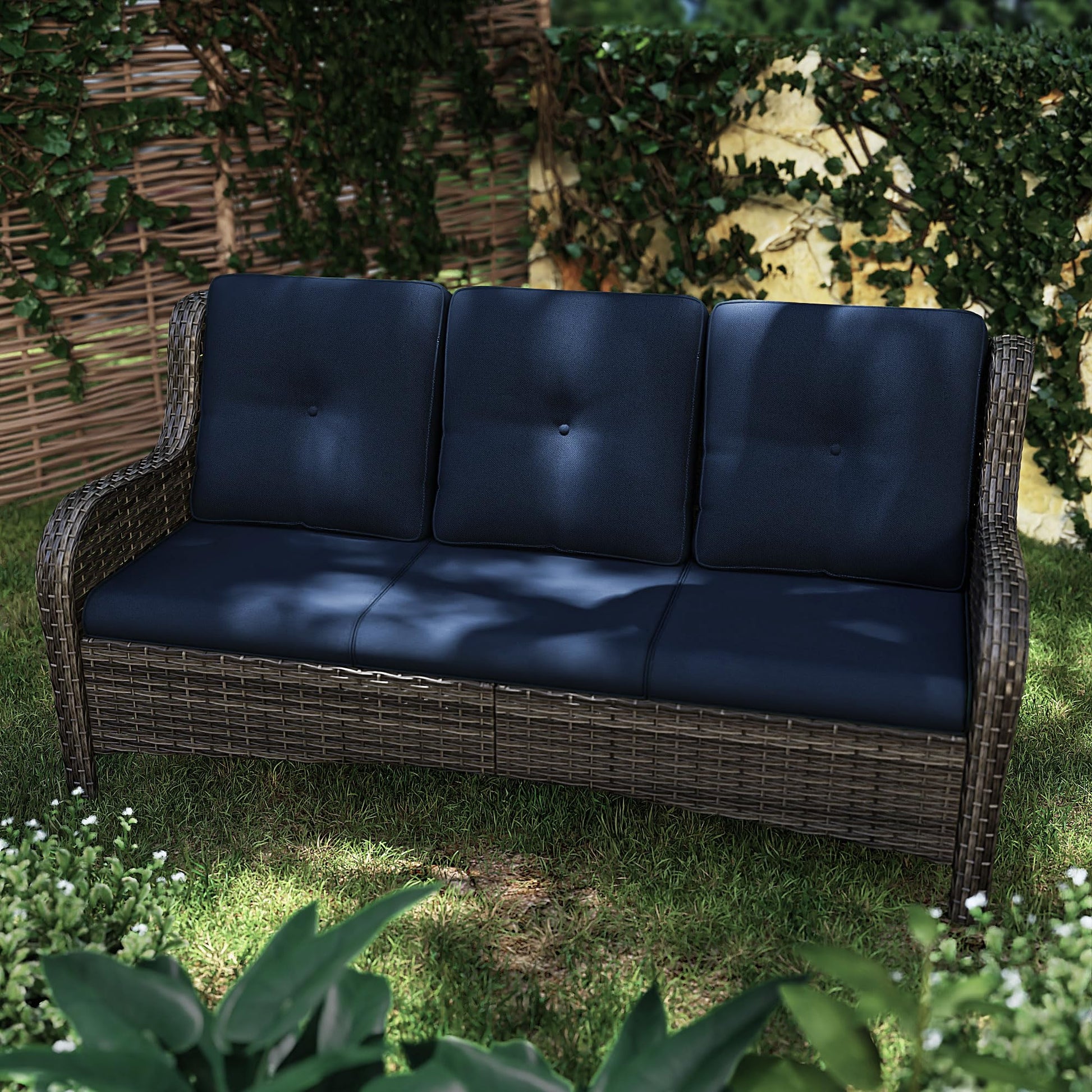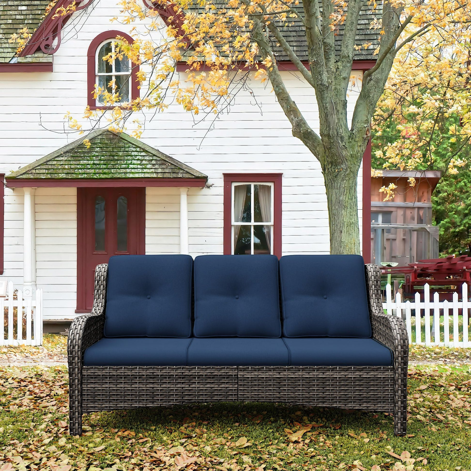 73'' Outdoor Patio Couch Wicker Sofa - 3 Seater Rattan Sofa
