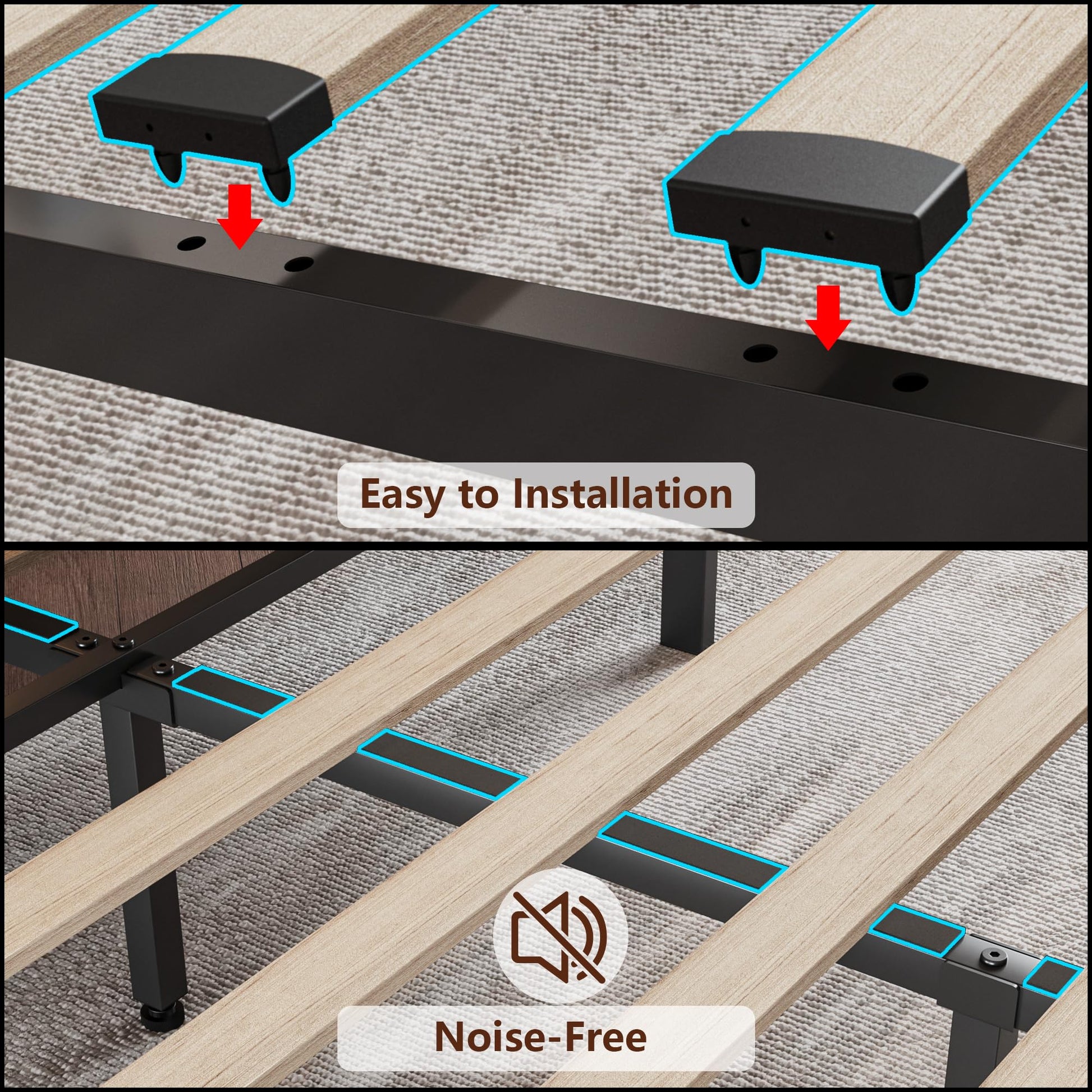 - Bed Frame with 1000lb Weight Capacity - The platform king size bed is designed with 10 straight wooden slats and 3 thickened metal slats, 11 heavy duty steel support legs.This bed frame increases comfort and stability of the upholstered platform bed frame, which can maximum weight capacity of 1000lb.