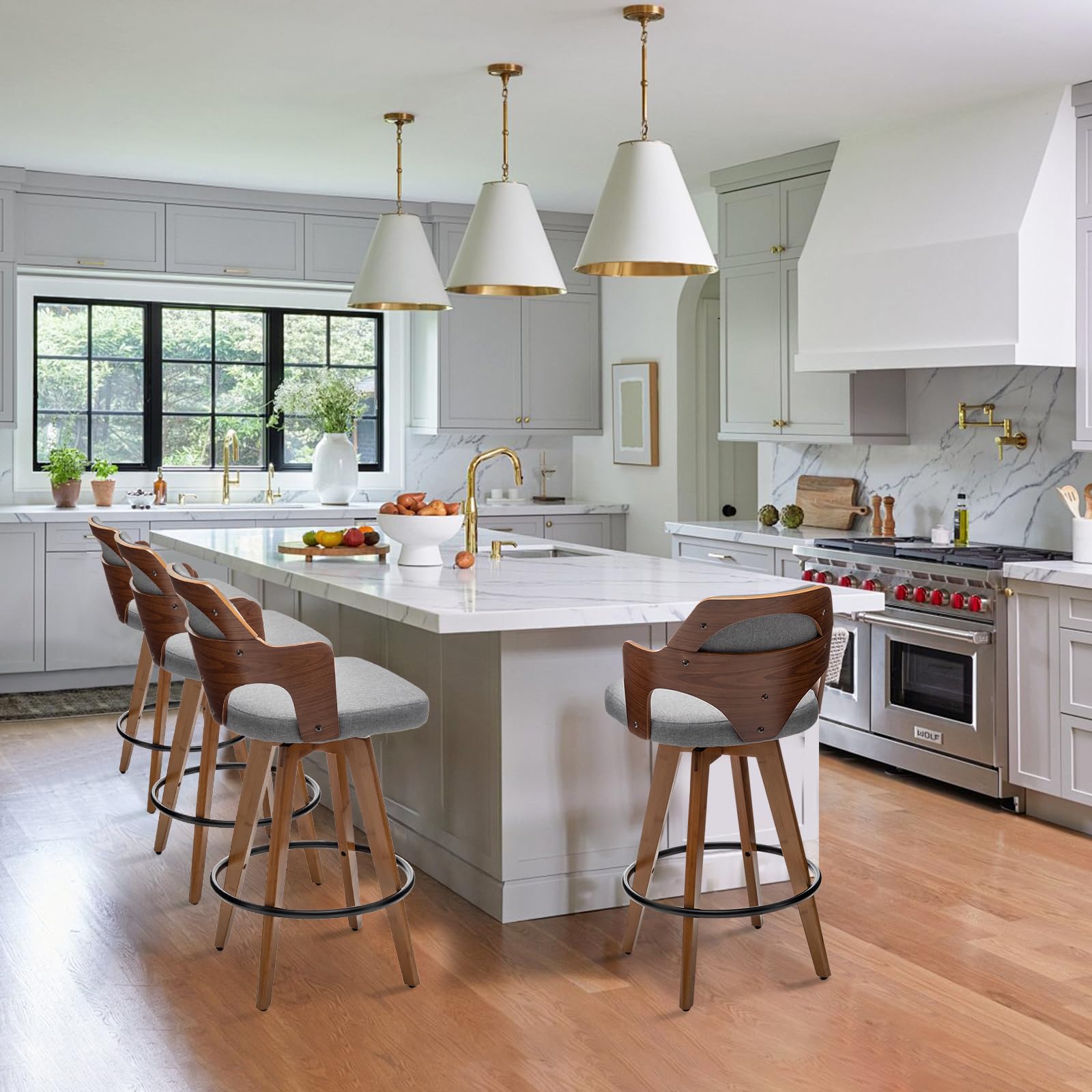 - Stylish and Comfortable: The barstools integrate retro style into modern style design and have a refined appearance. The bar-height chairs are ergonomically designed and the round footrest increases the stability and comfort of the island chairs.