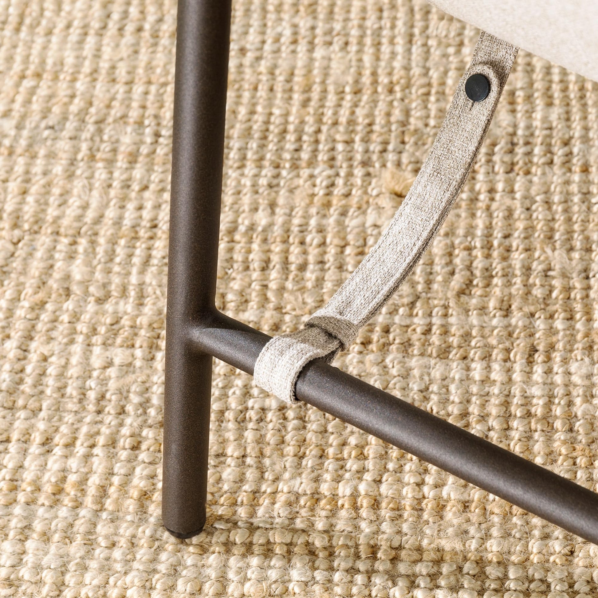 Details: Experience pure relaxation in this armchair that beckons you to unwind. Boasting a modern silhouette and plush foam cushioning, it features a pillow back and an open black metal base with four legs, providing a stylish and cozy seating option.