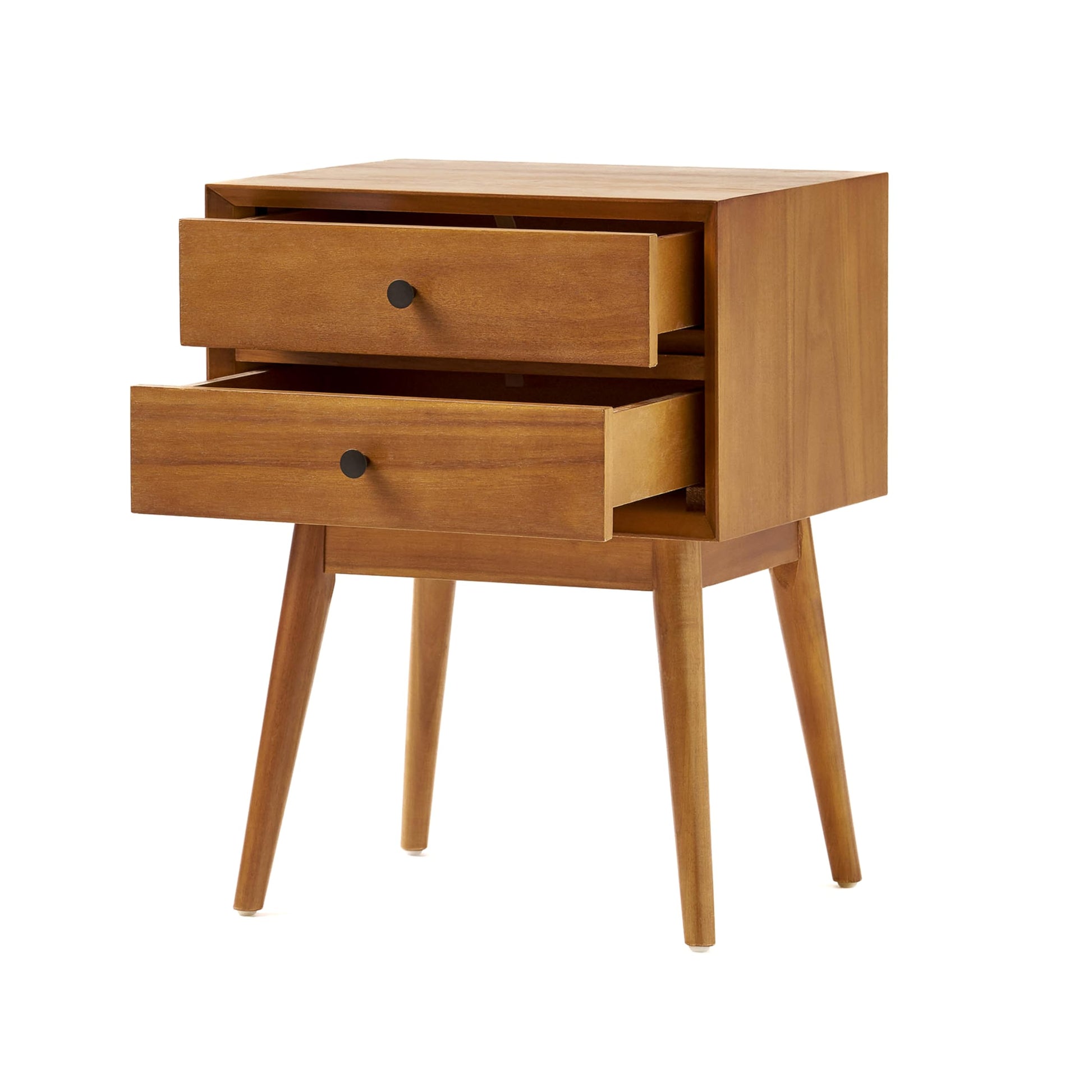 Mid-Century Acacia Wood Nightstand with 2 Drawer