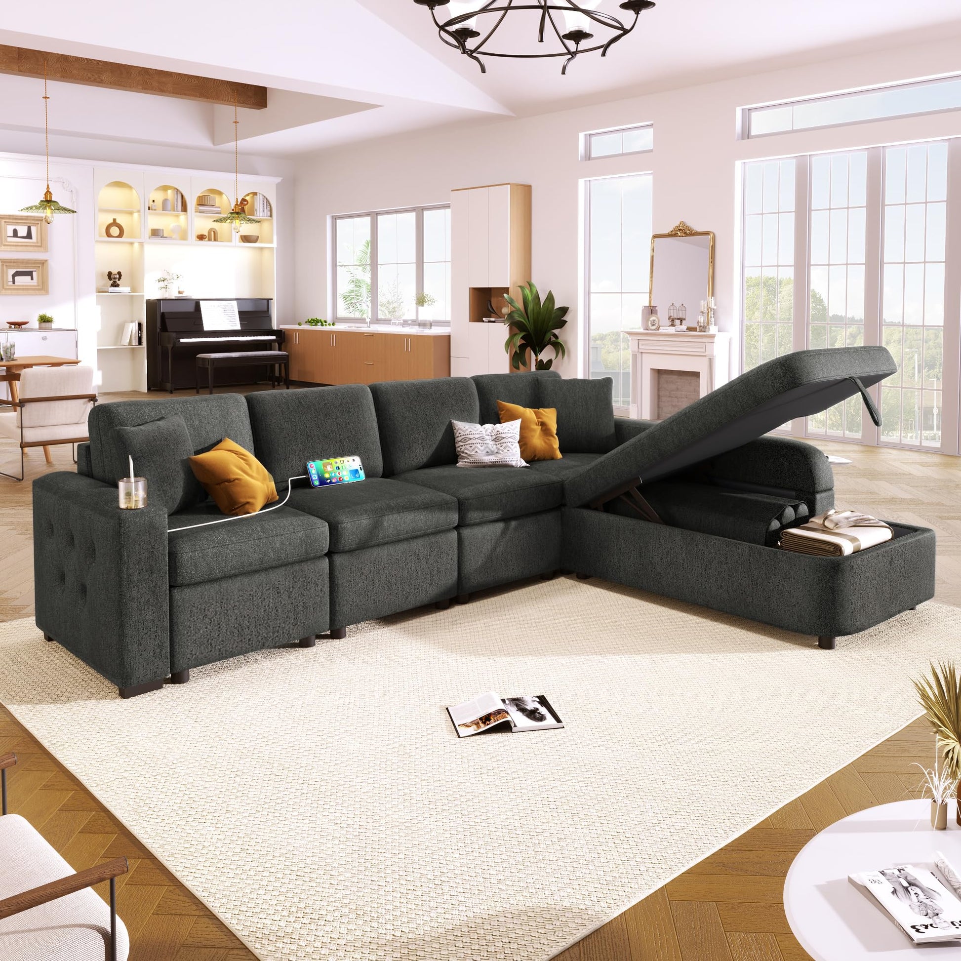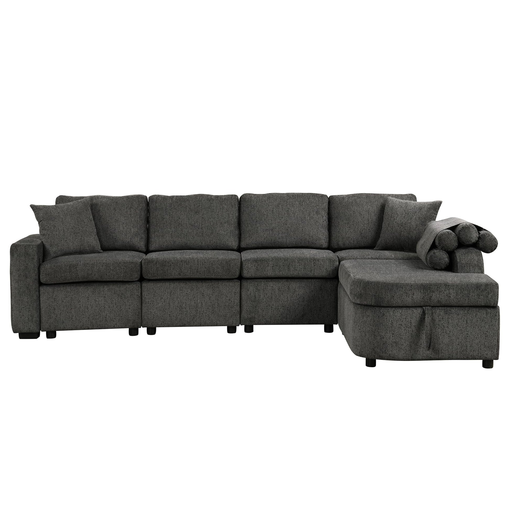 Modern Couch with Storage Chaise,Cup Holder and USB Ports, Reversible Sleeper Sofa