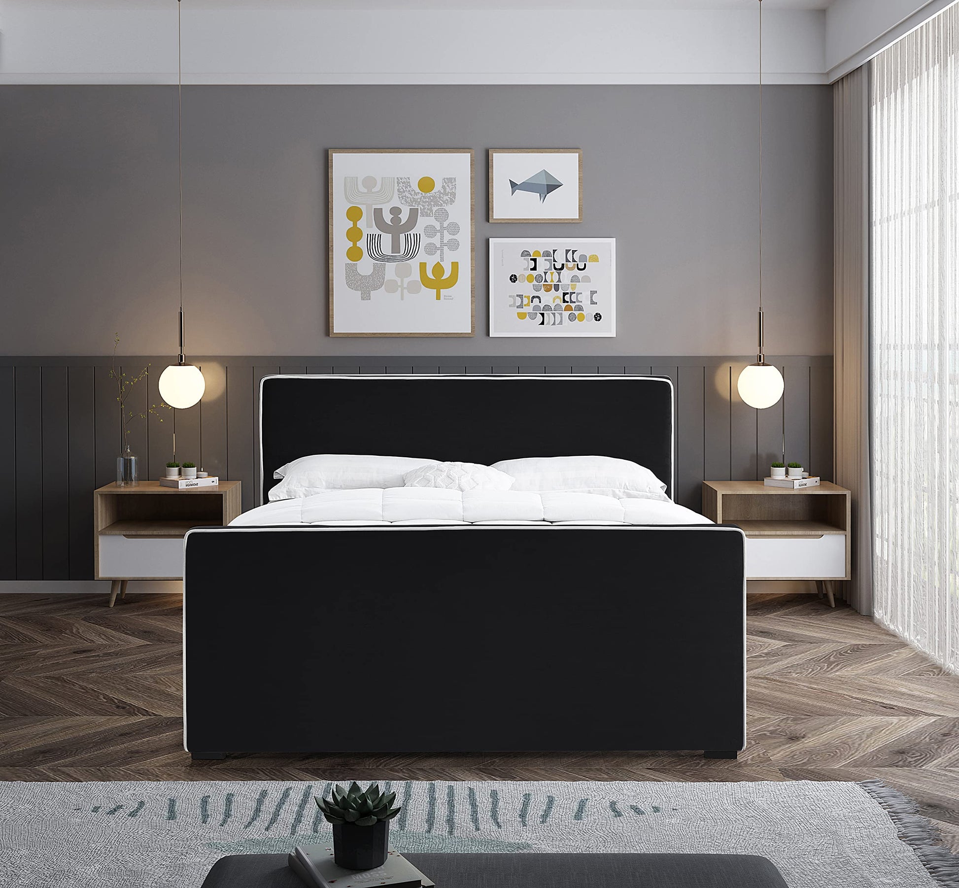 Special Feature | Soft Black Velvet With Cream Velvet Piping, Dark Espresso Wood Legs, Contemporary Design |