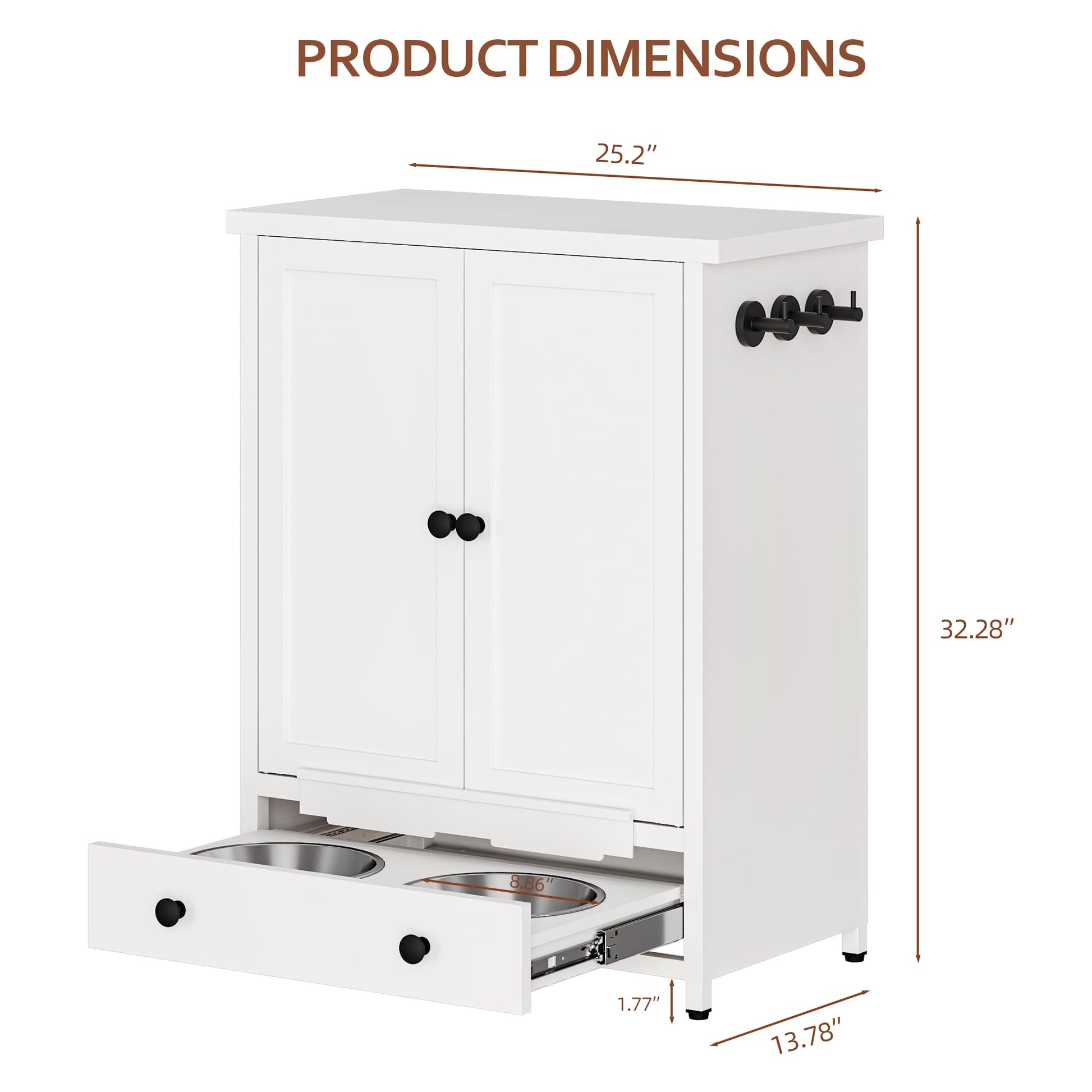 Perfect for pet owners who value organization and their dog's comfort, this feeding station seamlessly integrates into any home décor while providing a dedicated space for all your pet's dining essentials.