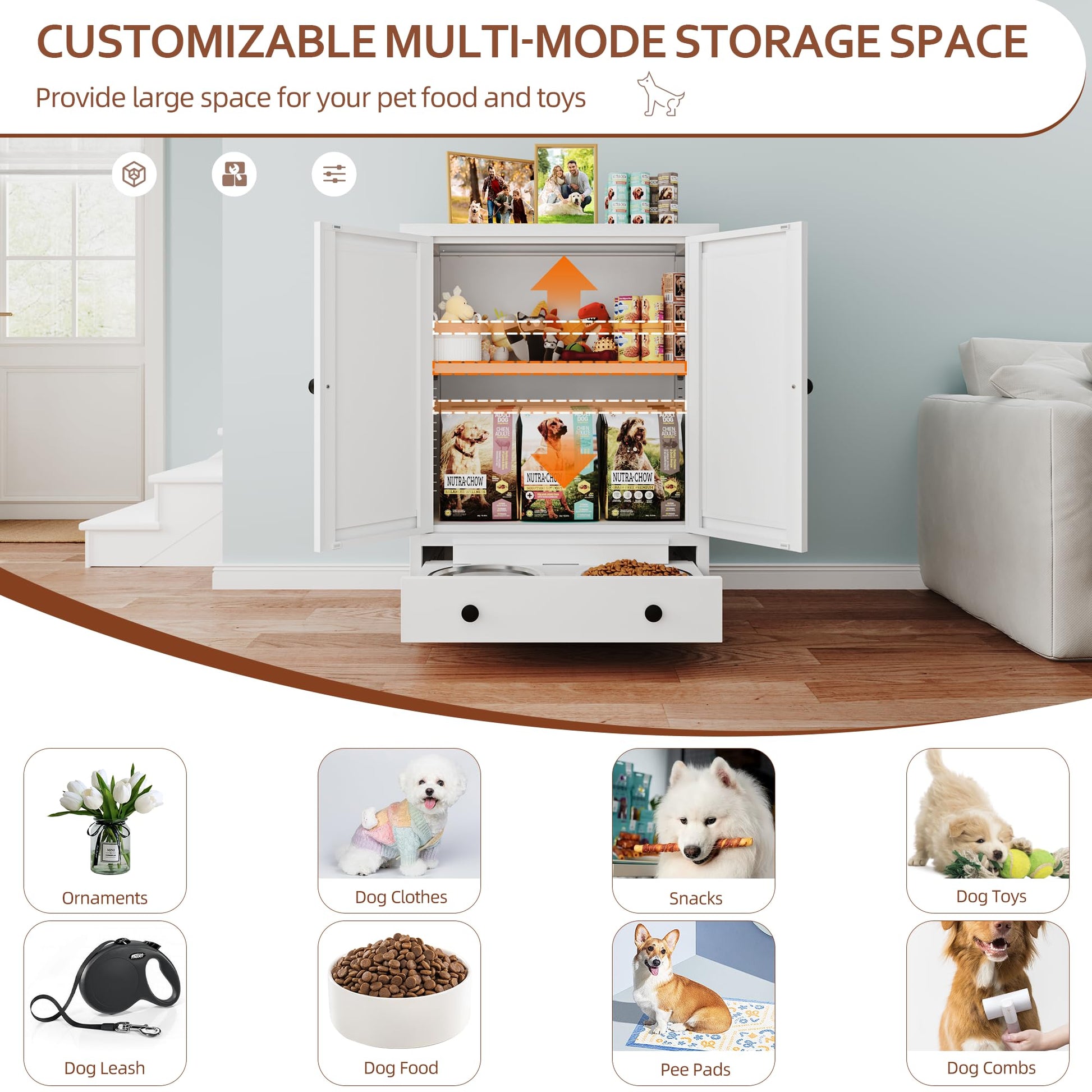 - Spacious storage cabinet keeps pet food fresh and organized