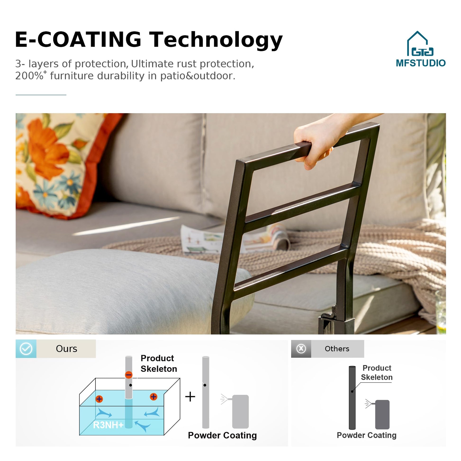 - Sturdy Structure This modern outdoor sectional sofa set is constructed of heavy-duty metal frame,enhancing the stability greatly.Thick sofa legs also improve the weight capacity.