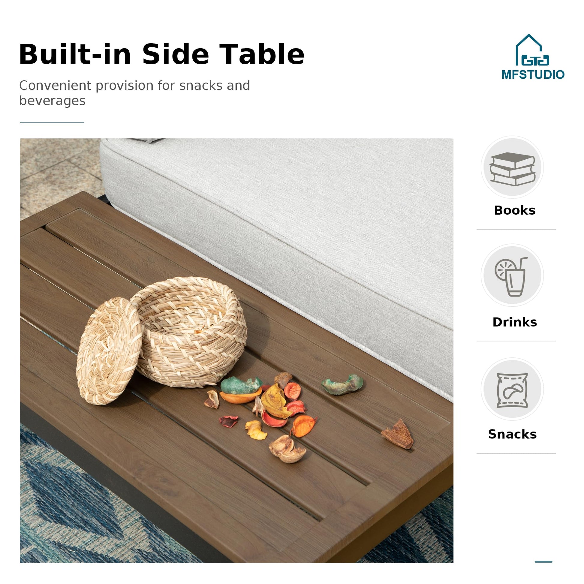 - Various combinations Our outdoor sectional sofa includes 2 loveseat, 2 single chairs with side tables and 1 coffeeTable. The modular design allows the sofa to be freely combined according to your preference, such as turning the sofa into a bed.