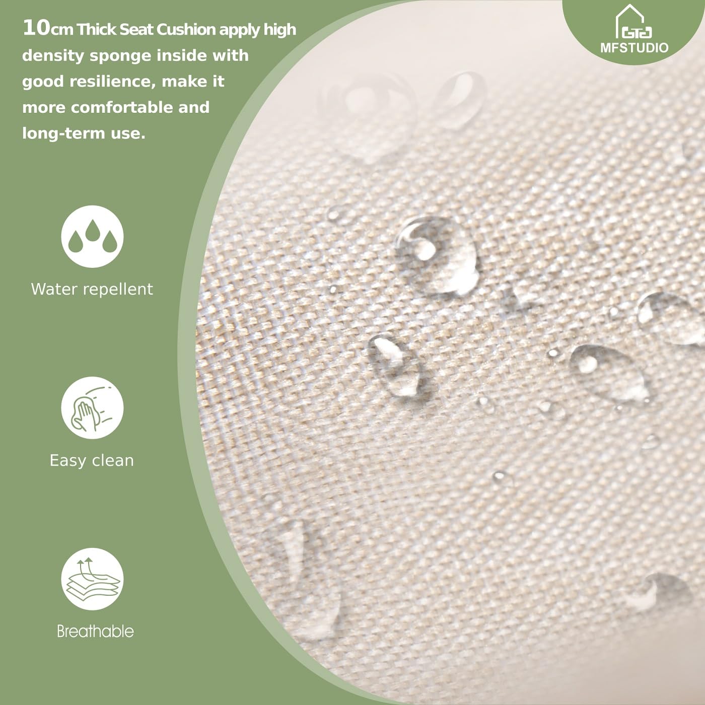 - CUSHION PRO Technology Cushion Fabric: Equipped with a high-density sponge, 4" thick seat cushions would be more comfortable and not easy to deform. All the cushions are crafted from fabrics processed by CUSHION PRO technology, which is anti-soiling, UV resistant, and easy to maintain. The high backrests provide excellent support for your body and ensure long-lasting comfort.