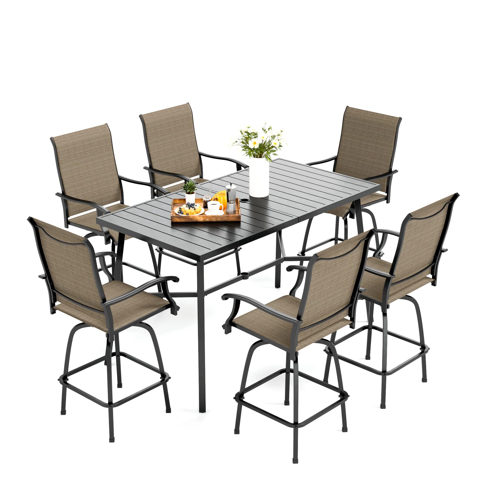 Patio Bar Set of 7 with 1 Heavy Duty Metal Slat Bar Table